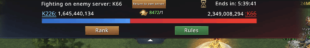 Meanwhile, the castle siege was not looking any better. K66 had taken control of the majority of the castles across both servers, and their strongest players had parked themselves comfortably in King’s Landing, knowing no one dared to challenge them.