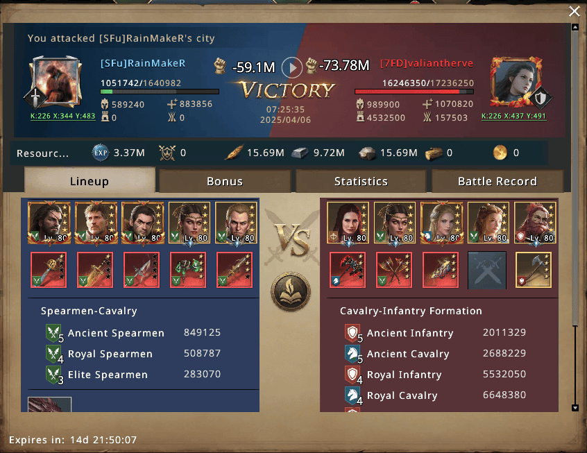 The long-awaited War of the Kingdoms Sunday had finally arrived, but this time, SFu and the entire kingdom of K226 were in for a big surprise. Just a few days before the event kicked off, two exceptionally strong BDR players landed on K226, looking for some merit points. But these weren’t your average merit hunters. These were top-tier players with maxed-out accounts, fully-equipped with SS commander line-ups and high-level strategies that left everyone on edge.