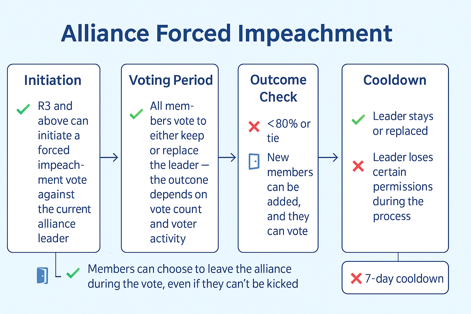 ✅ R3 and above can initiate a forced impeachment vote against the current alliance leader.