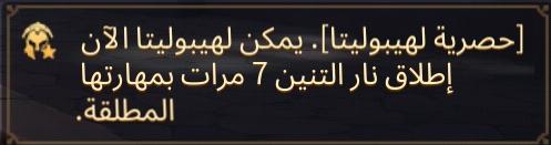 تقوم هيبوليتا بإطلاق نار 5 مرات كل كرة نار تسبب %120 ضرر بإحدى القوات العشوائية وتسبب هذه الكرة تقليل سرعة الهجوم بنسبة %10 و تقليل الطاقة بمقدار 100 نقطة وقابلة للتكديس حتى 6 مرات وتأثير المهارة لمدة 6 ثوانى