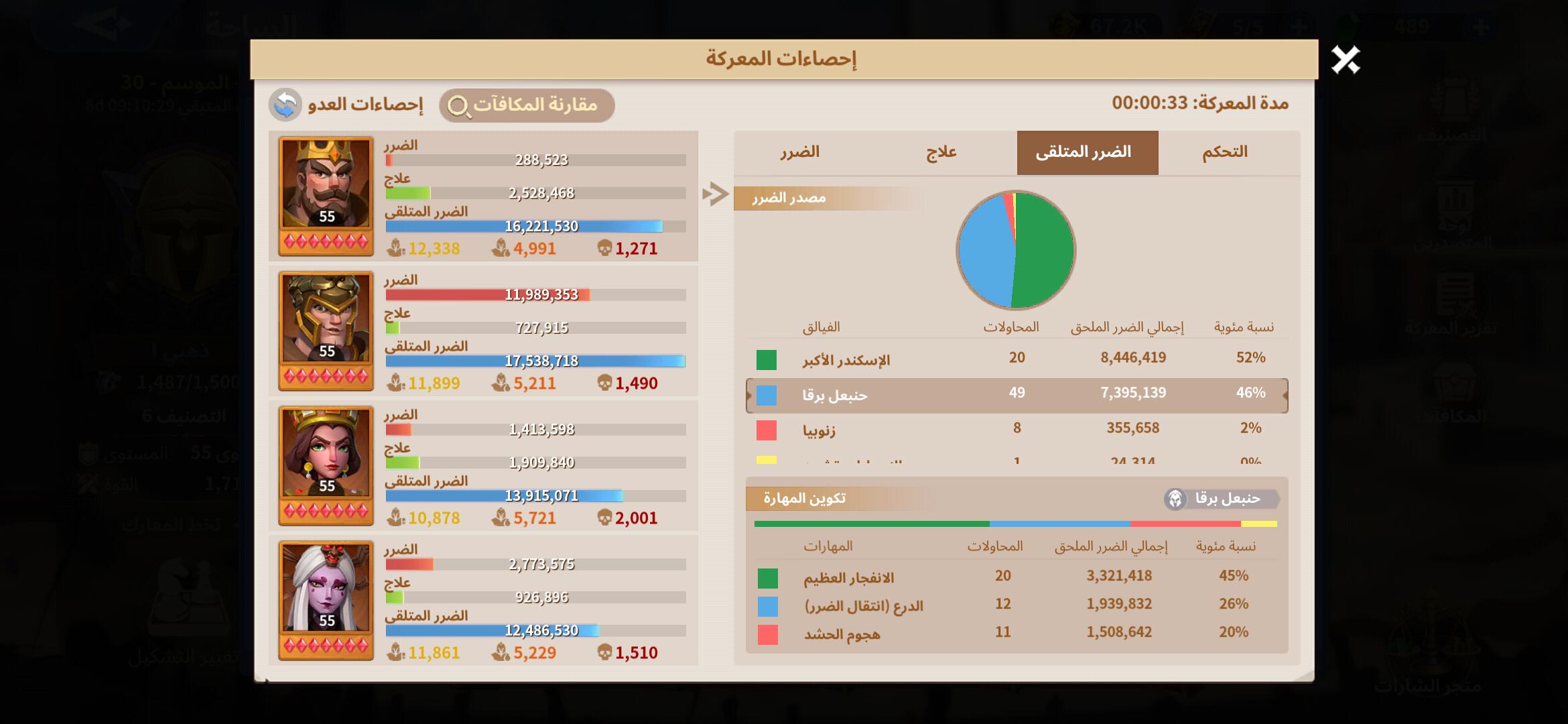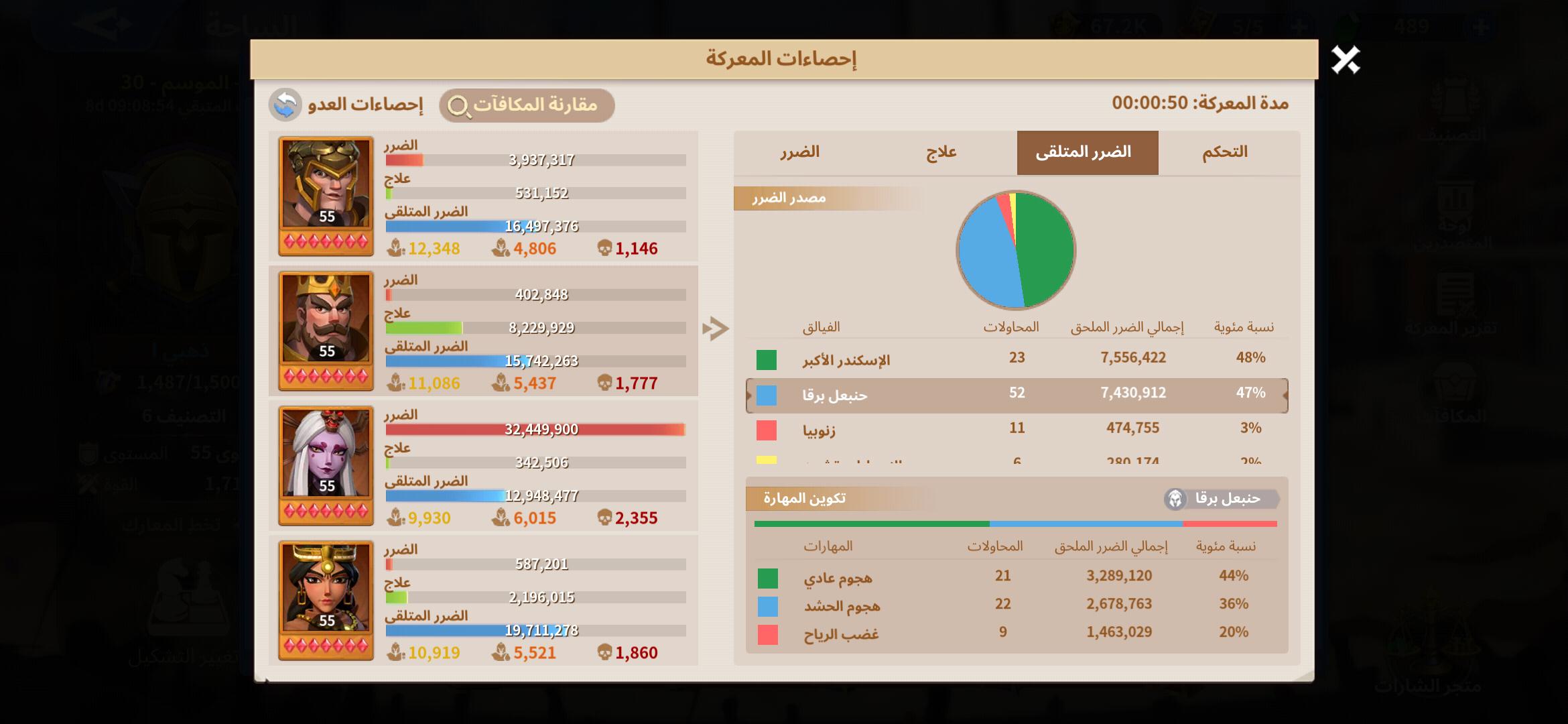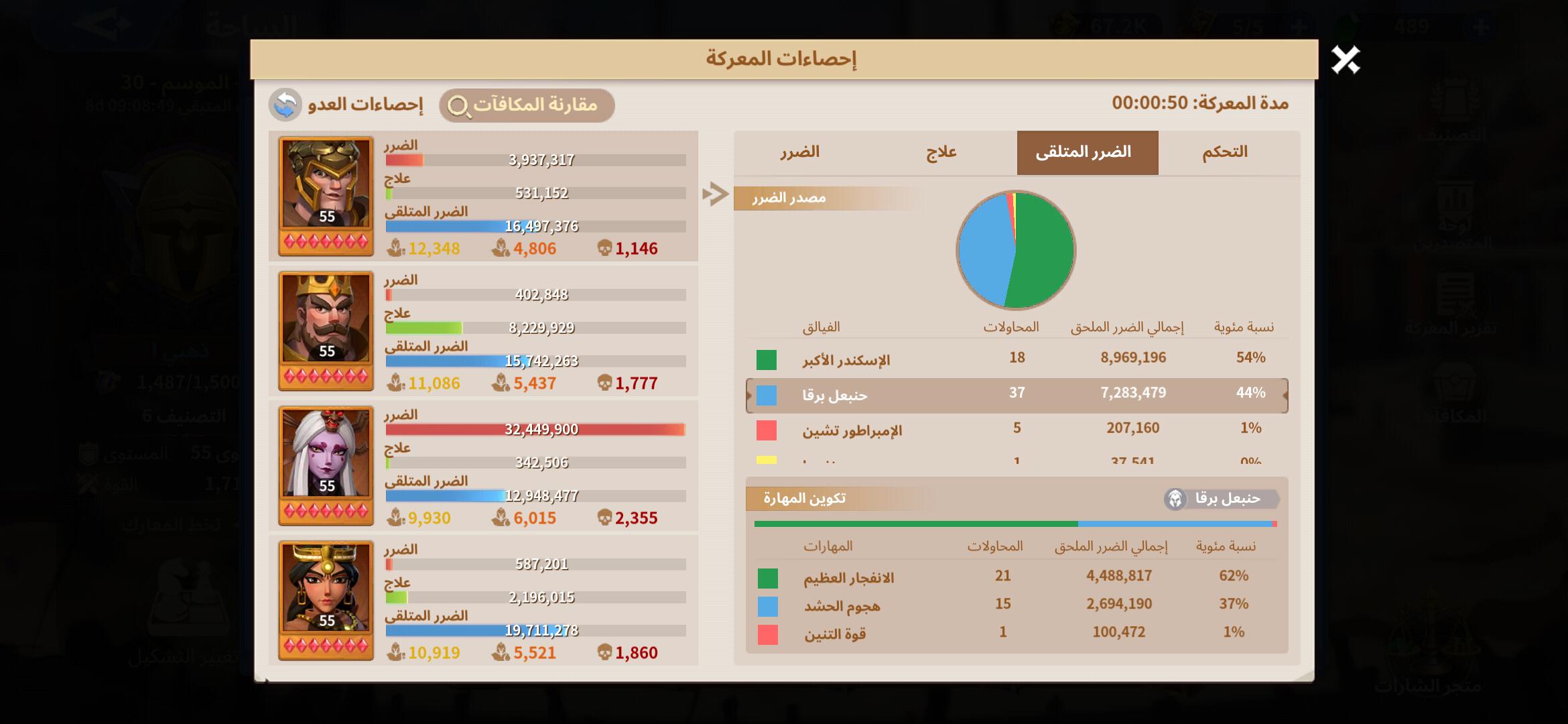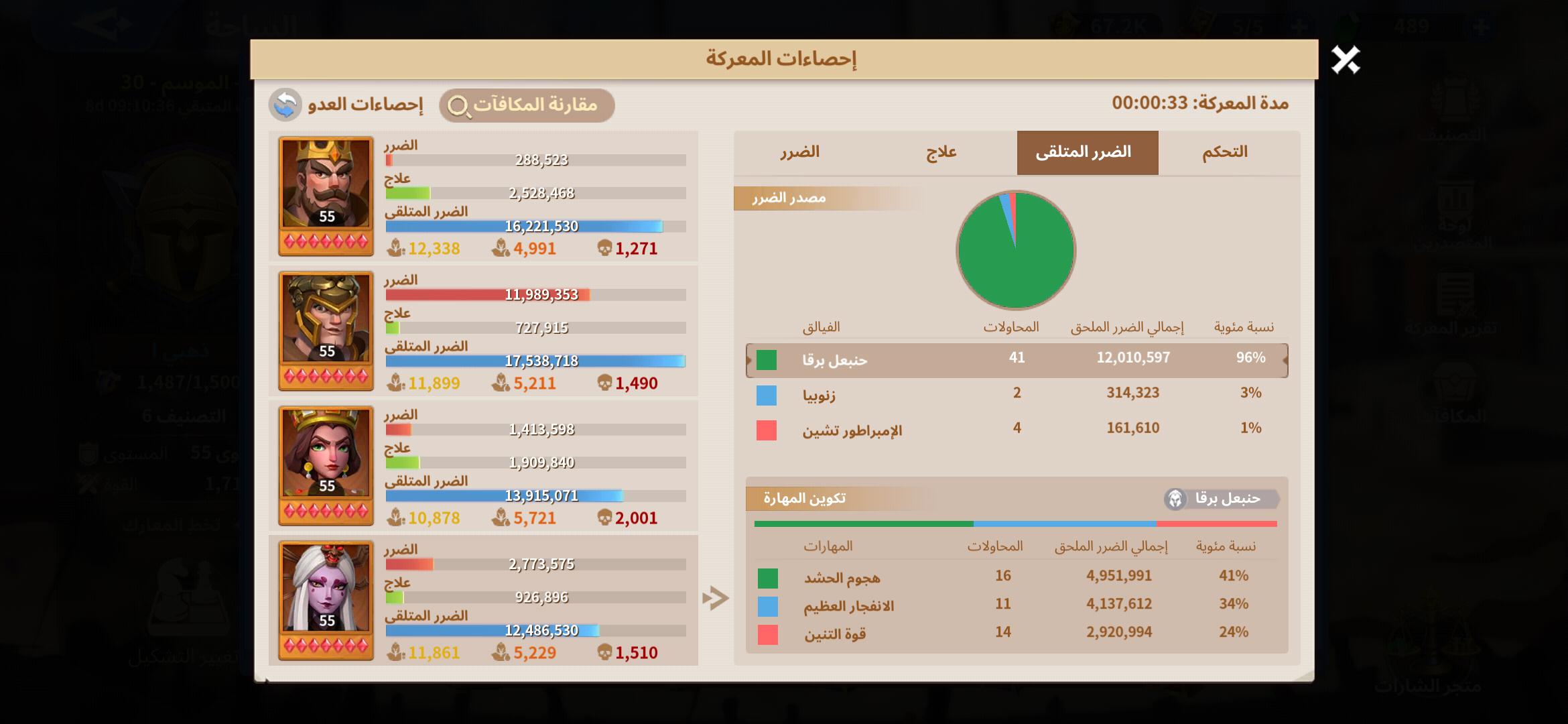 نلاحظ ان المهارة تسببت ب 10.8 مليون ضرر فى الاجمال وتم تقسيمهم كالاتى