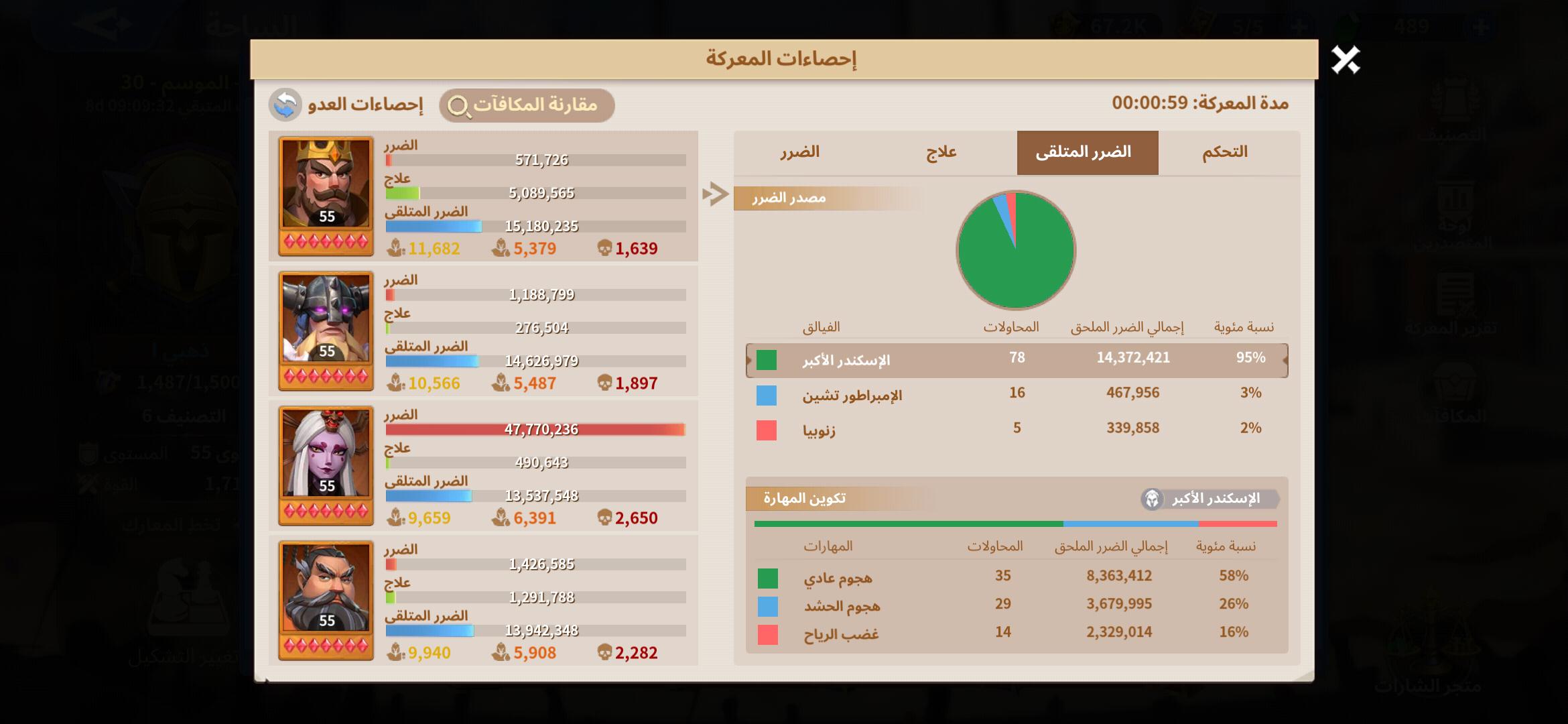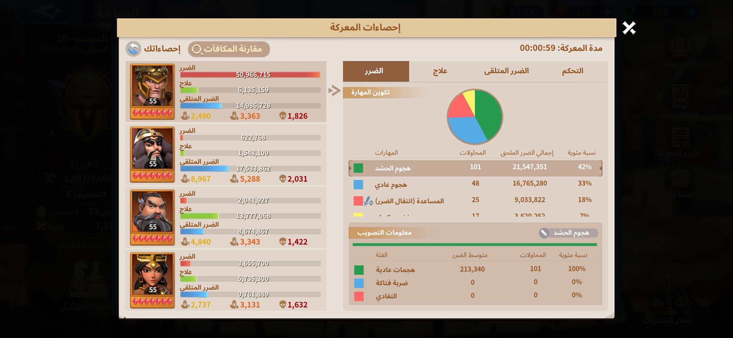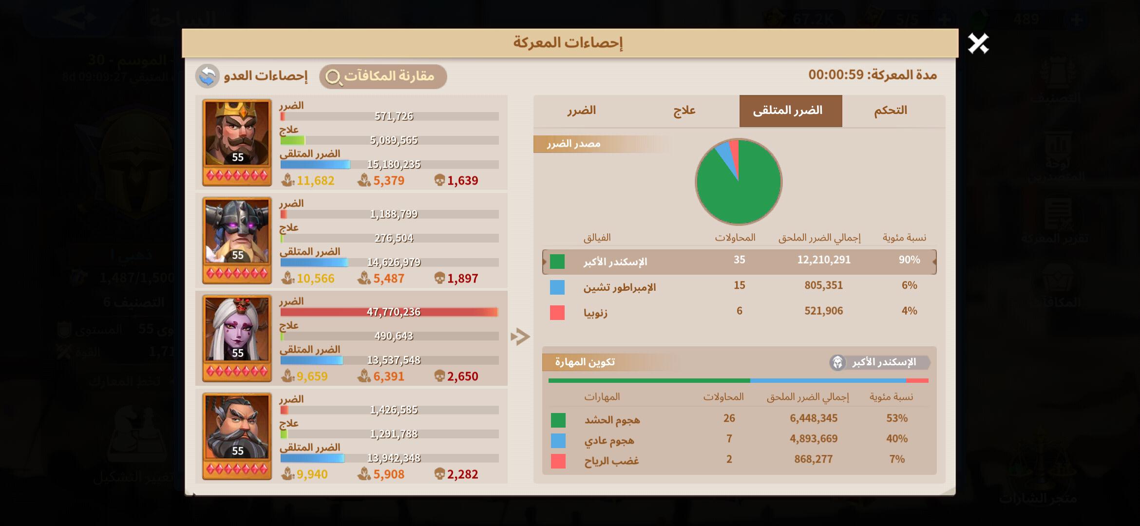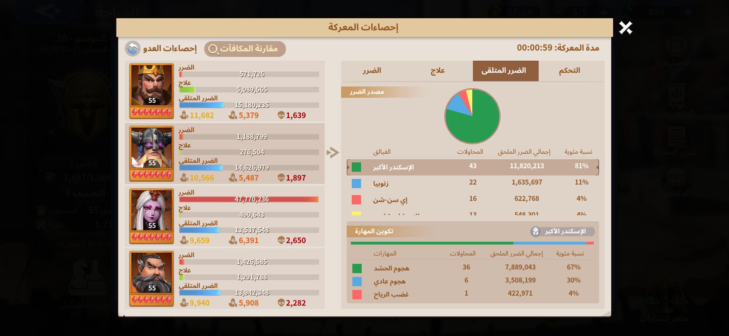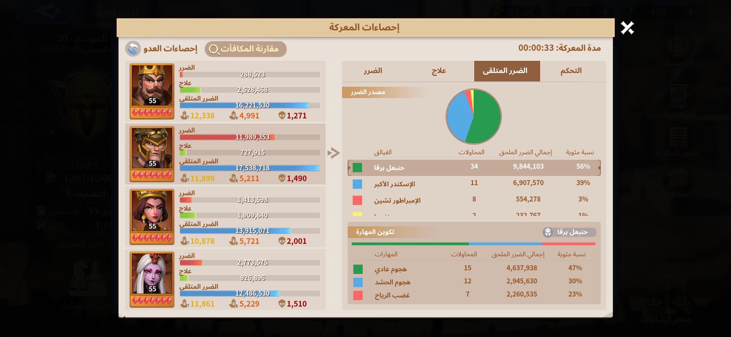 نلاحظ ان المهارة تسببت ب 10.8 مليون ضرر فى الاجمال وتم تقسيمهم كالاتى