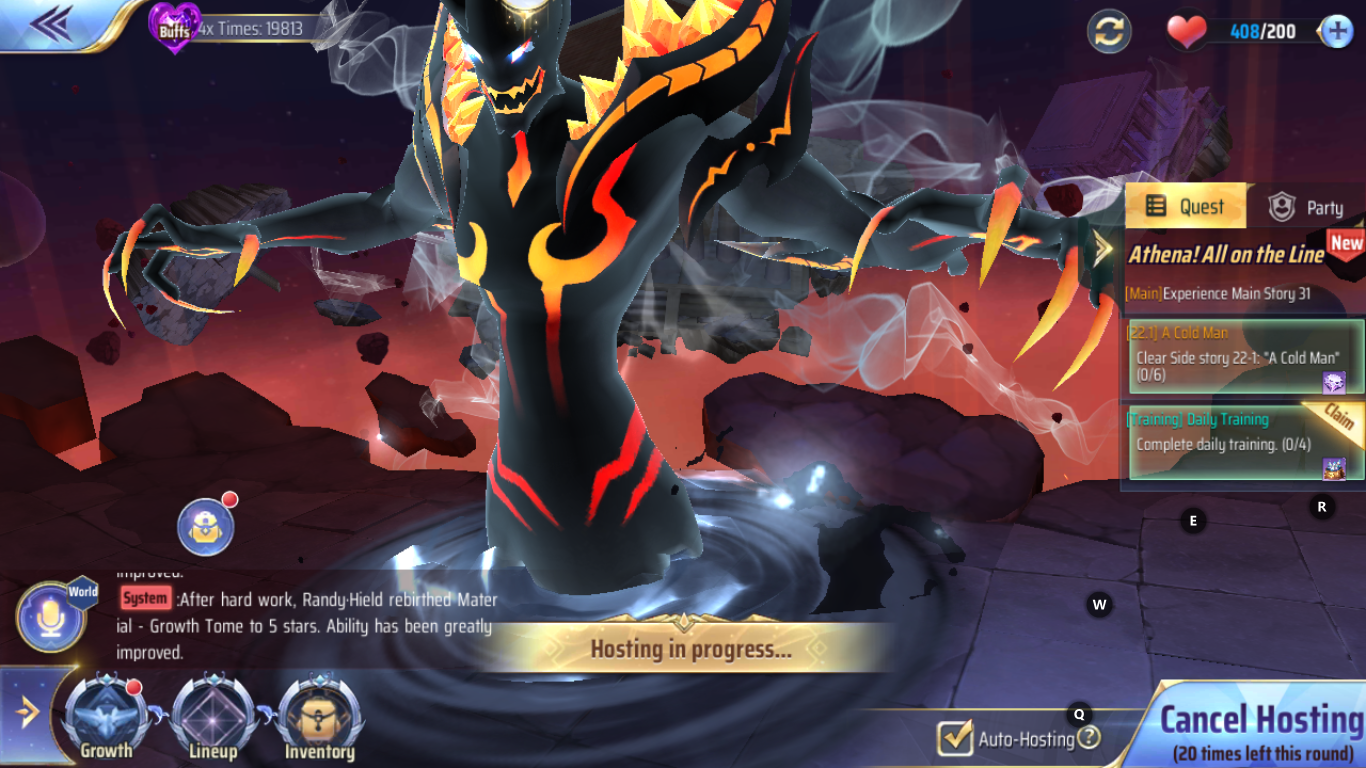 game emulator froze before hosting on Crystal farming could start.