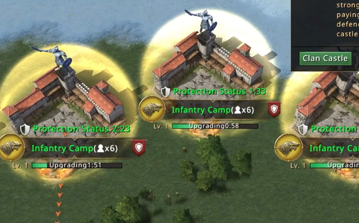 After scouting the battlefield in a hurry, he realised that he was by far the strongest on the battlefield, it was his time to shine and capture the City of Glory. As soon as he realised it, he notified his teammates, who this time quickly complied with his request of building infantry camps and try to win the battle for the City of Glory. In the last round, when his request was made, he was promptly ignored, G2L was a great change compared to his previous teammates. The infantry camps were now fully constructed.