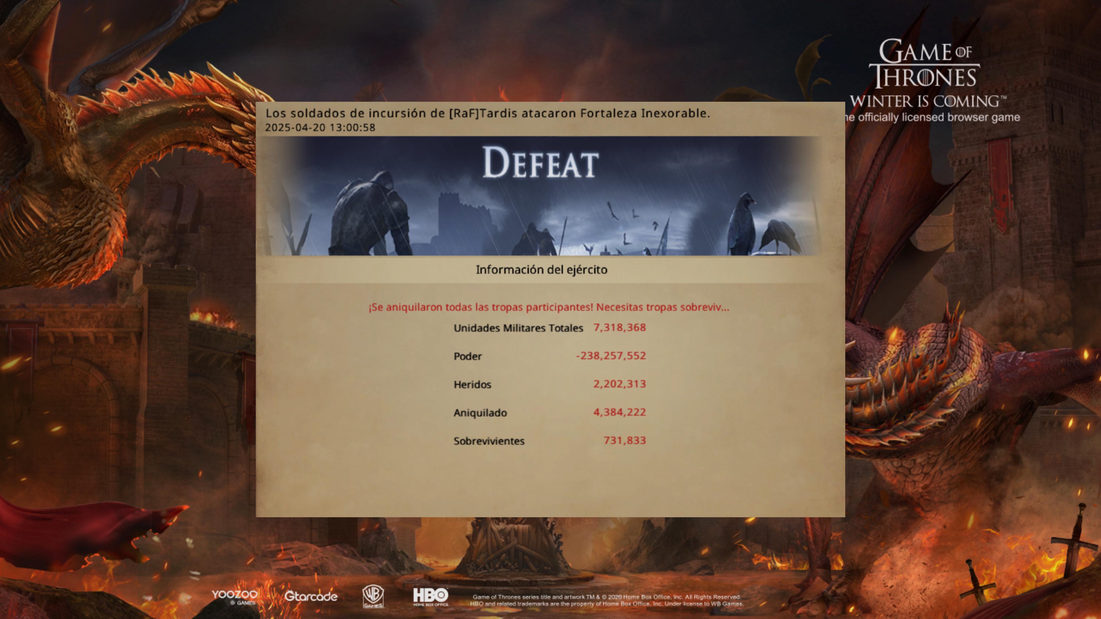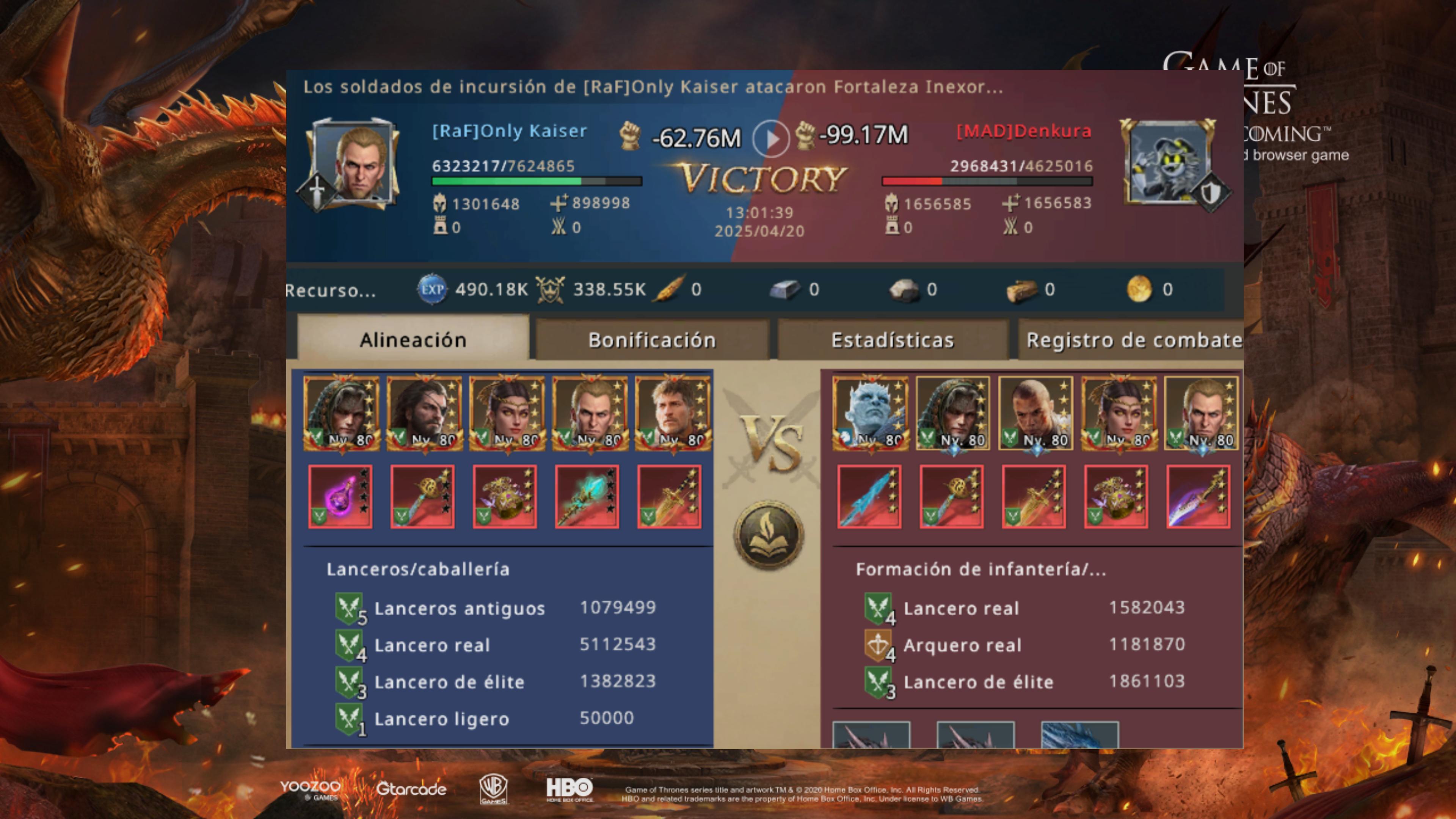 The next to attack was Only Kaiser, who decided to go with lancers, the attack was a success, although somewhat close, since he did not completely annihilate Denkura's lancers, noting the clear difference between Jaime and the Grey Worm... if the situation were the other way around, not even a defense would be won.