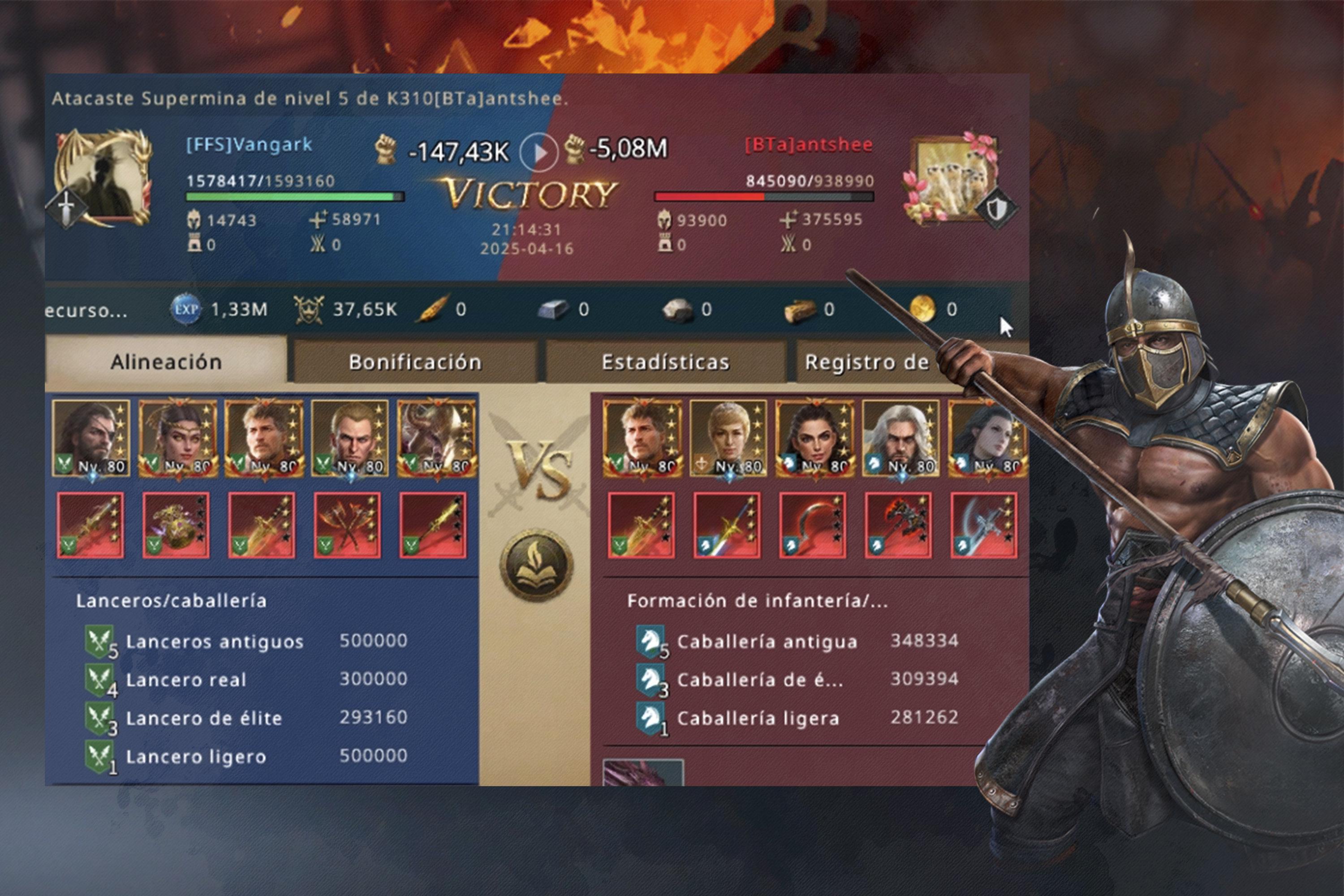 It was then when Uriel the Great took his place, after Vangark hit the intruder. The battle was not long in coming. The members of the BTA and MDB Alliance, began to attack with force, and in a coordinated manner as the members of K276 do. Quickly, Vangark hit the attackers, using his spears on other spearmen or cav wielders. After the blow, Vangark gave the signal so that his partner could return to the mine and continue adding time.