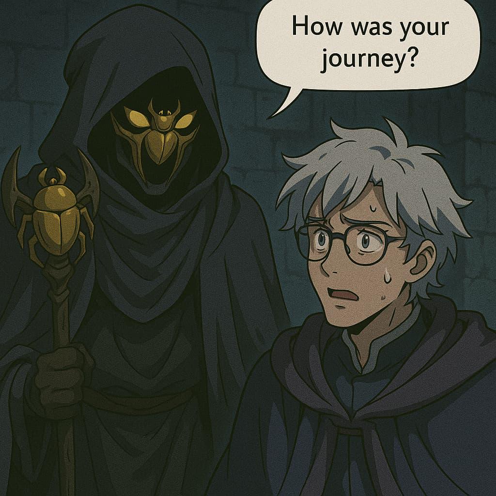 "Was your journey acceptable?" the Scarab Lord asked, his voice like sand scraping over stone.