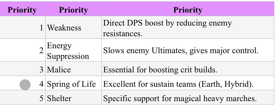 - Sustain Builds: For marches that focus on outlasting opponents (e.g., Earth and hybrid marches).