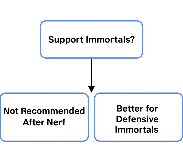 Support Immortals already benefit from a strong energy base, so I’d definitely not recommend using Adrenaline Rush on them after the nerf. It’s better suited for defensive Immortals, where it can still offer some value, for third or fourth teams or in very specific scenarios.