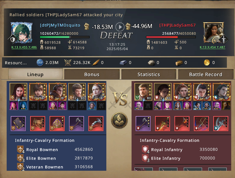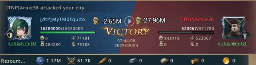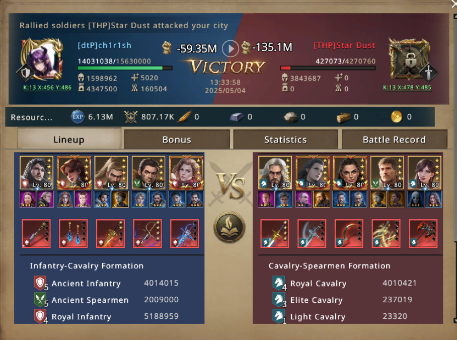 I don’t feel like I won when I look at the report, LadySam said lol. I told her yes that is true. While she won the fight she only killed T1s, while skeeter killed higher tiered troops. Sam didn’t lose her lord though and the information she can get off that battle report will help guide her development in the future. Next Stardust wanted to rally me. I did not bother to hide my troops choosing to pretend it was a sneak attack lol. She counters me but I knew I had an advantage being on the defensive. It would show us both what we were doing well and what still needed work.