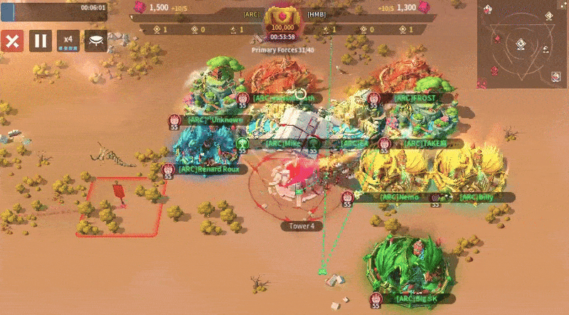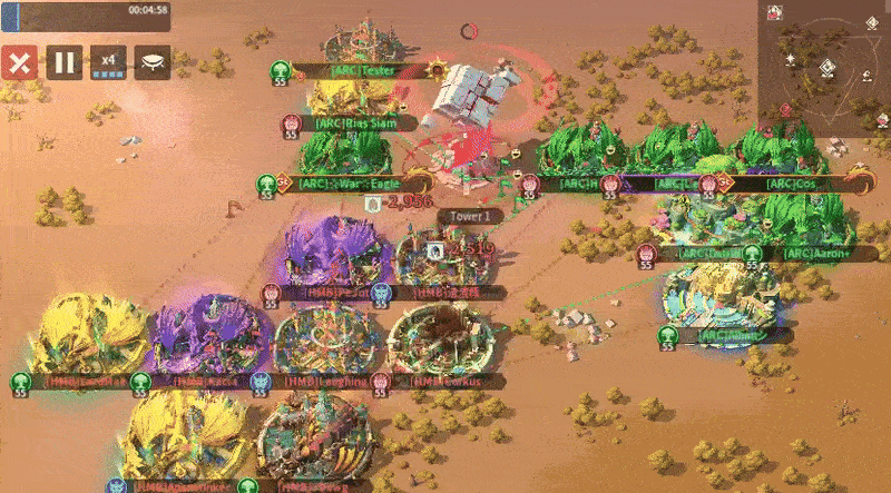 At Tower 1, HMB’s strongest player finished relocating and immediately zeroed an enemy. Immediately, some of them sent marches to try to capture the tower, but others were focusing on attacking the enemies and defending themselves. With HMB’s split decision, ARC was able to stop their attempt multiple times. ARC kept sending players back to the tower and focused on zeroing others. At 8 minutes, ARC made the call to stall the tower as long as they could while moving to the outskirts of HMB’s home tower.