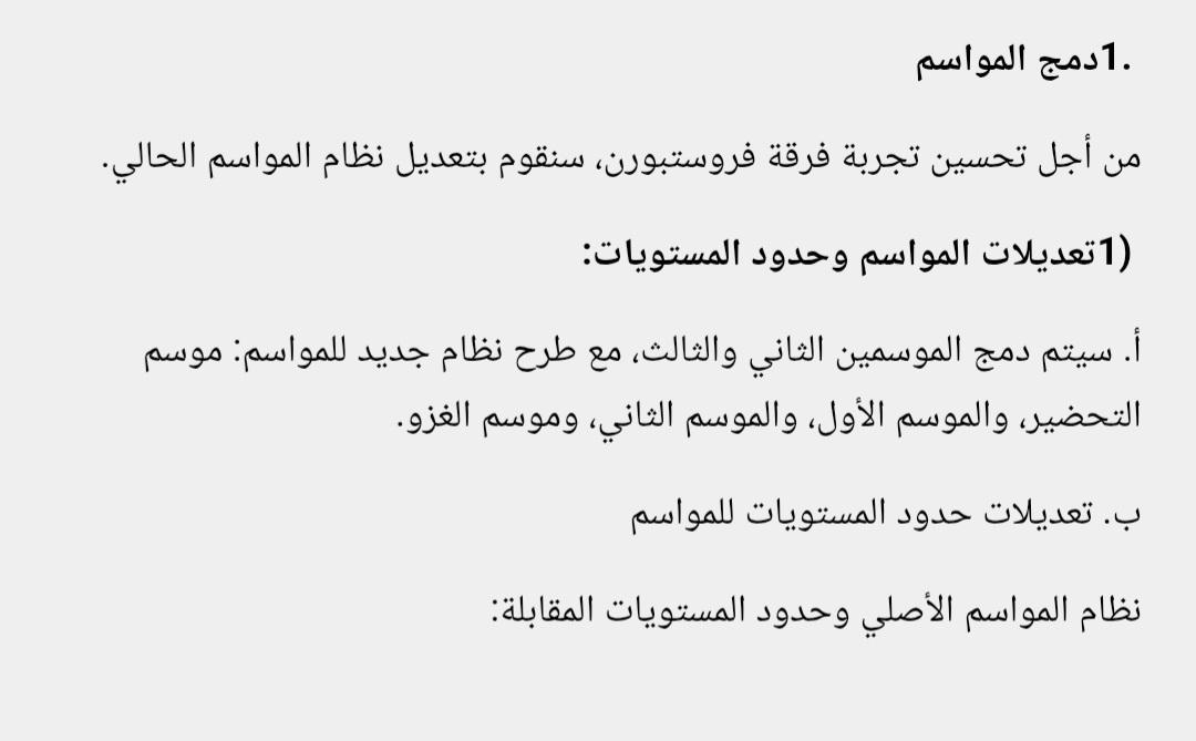 من أجل تحسين تجربة فرقة فروستبورن سوف يتم تعديل نظام المواسم الحالي