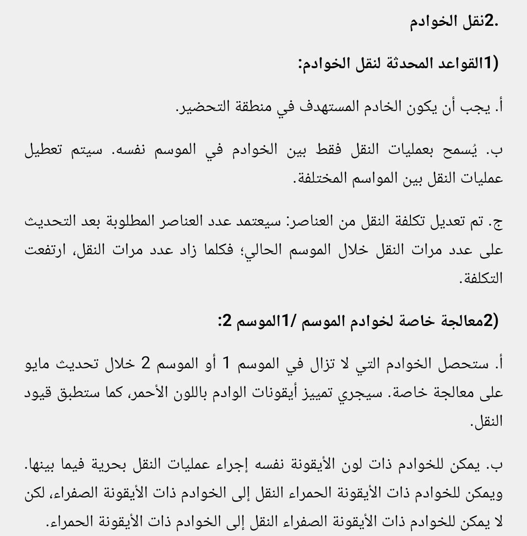 ستتلقى الخوادم في موسم التحضير تعويضات خاصة بالموارد الموسمية بناءً على عدد الأيام منذ إطلاقها