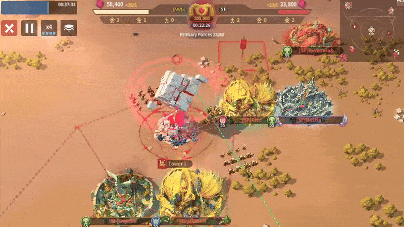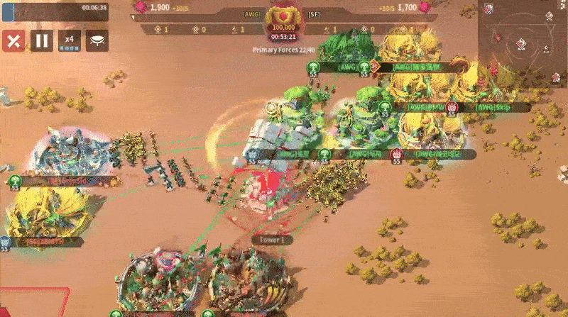 AWG sent four players to the Central Tower with one overlap, while SF sent five. With so few players from both sides, the team with the strongest member in the center will win control of the tower. There aren’t enough players to keep stalling until reinforcements show up to make a difference.