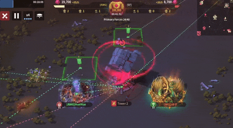 AWG relocated five players to Tower 1, with only one player directly next to the tower. The others gave up control of the east side of the tower to gather around the north side. SF sent nine players to the tower, with three players adjacent to the tower, one on each side. AWG could have blocked SF’s relocation to the right side of the tower had they not given up the spot. While AWG’s positioning isn’t the best, they are grouped and compact. On the other hand, SF’s relocations were all over the place. Some are so far out that they wouldn’t be realistically able to contribute greatly. Unless AWG sent some of their strongest players to Tower 1, five players wouldn’t be able to stall or take the tower from SF.