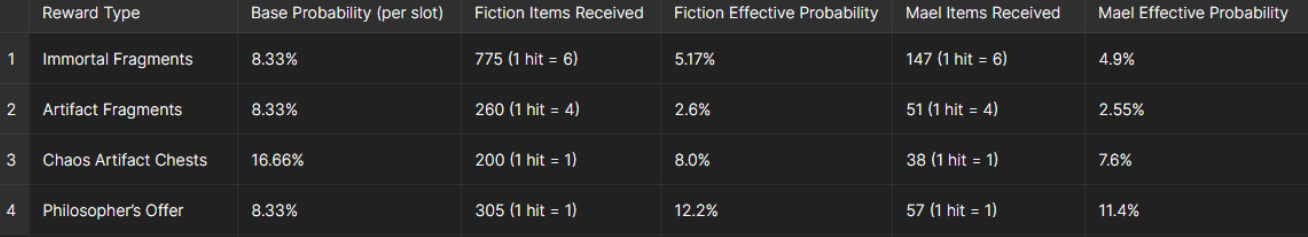 Fiction, a fellow Press Officer, ran an extensive test over 2,500 Chaos Roulette spins and reported the following: