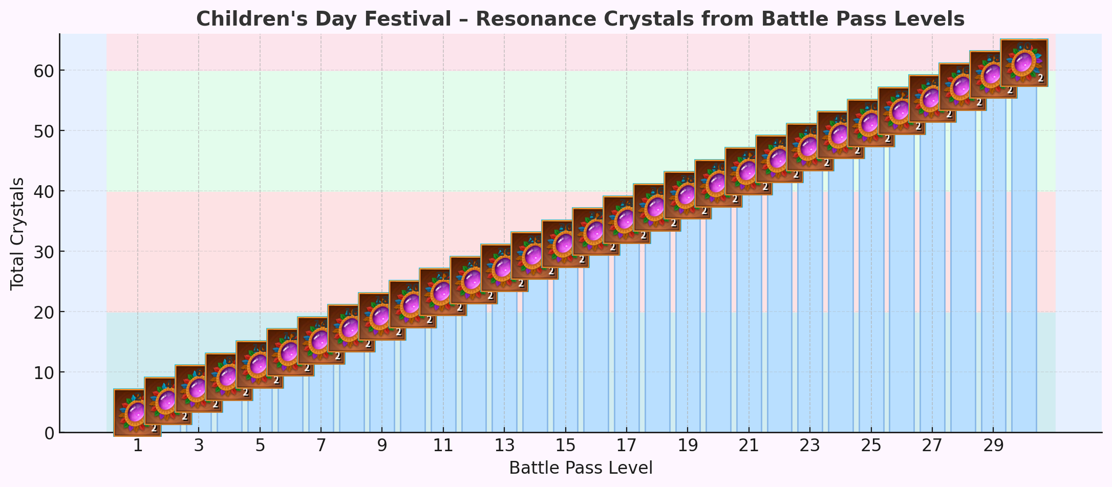 In Total, through the daily signins, the free Battle Pass and the celebration shop, players can earn a total of 90 Resonance Crystals.