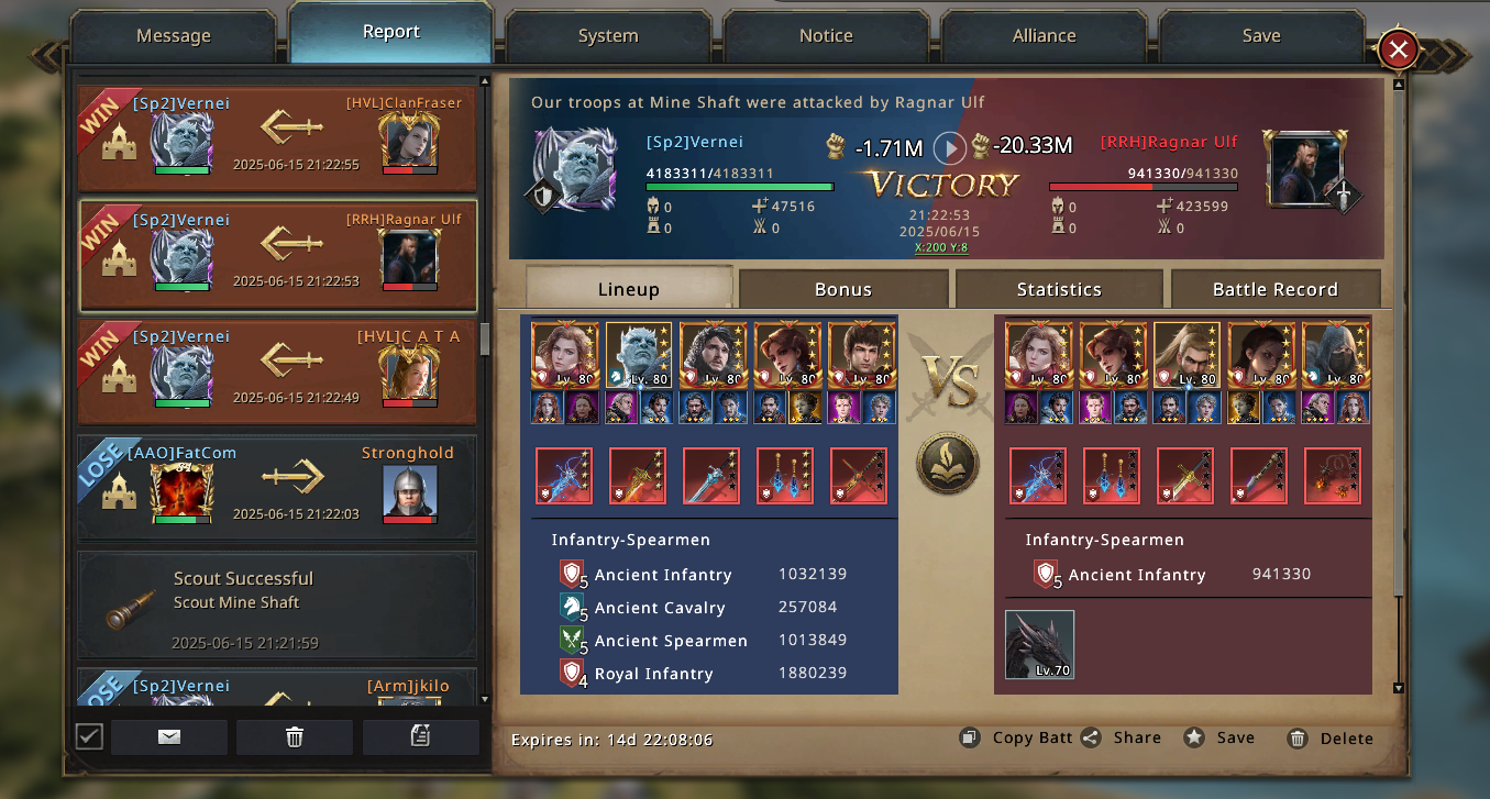 Instead, this week, we get a surprise guest: one of the accounts that gave us a real run for out money in our last AoH match. The one and only… Vernei🙌. Now we’ve got strong Rally Leads for all troop types.