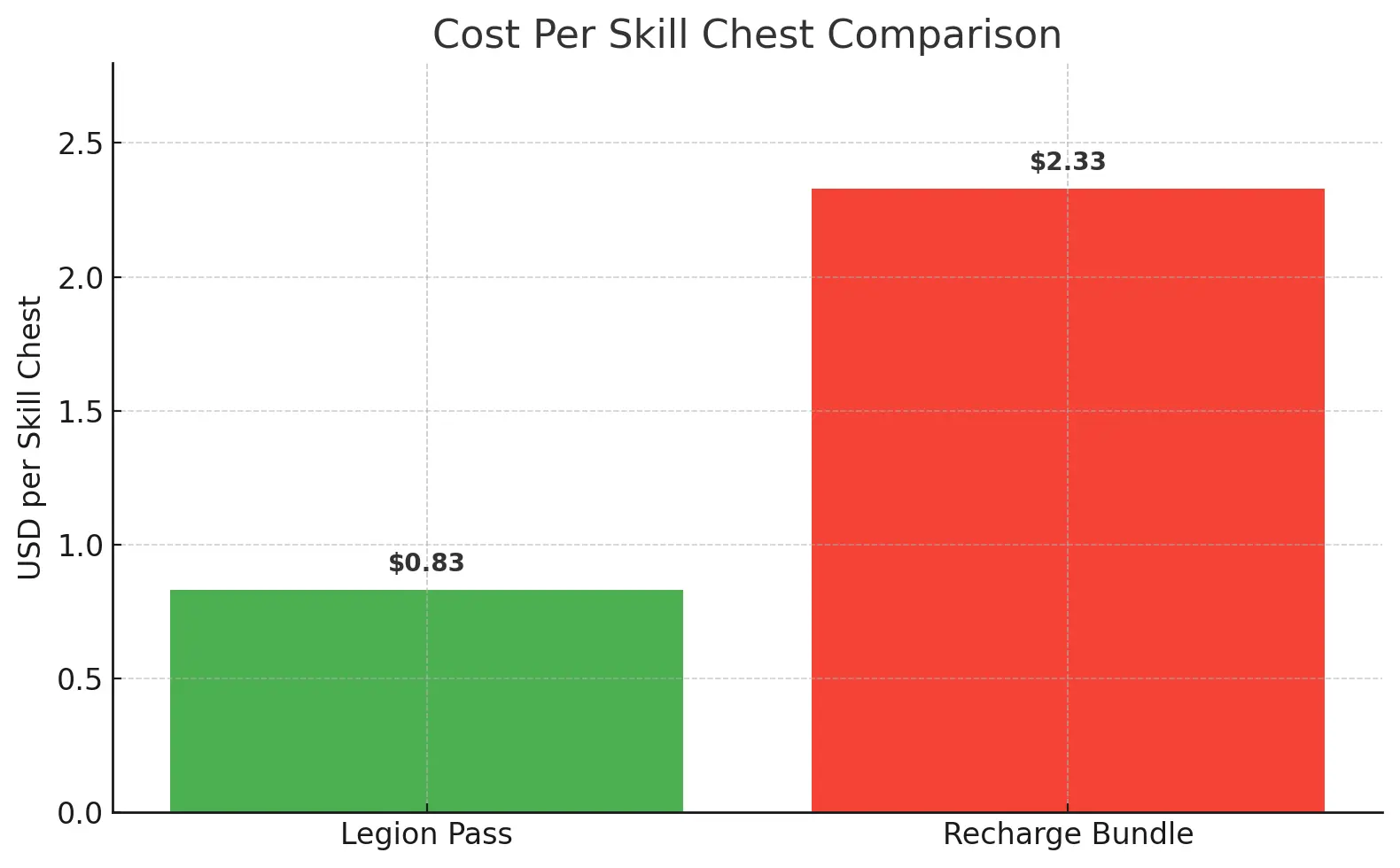 - 60 Legion Skill Chests for $50 = $0.83 per chest