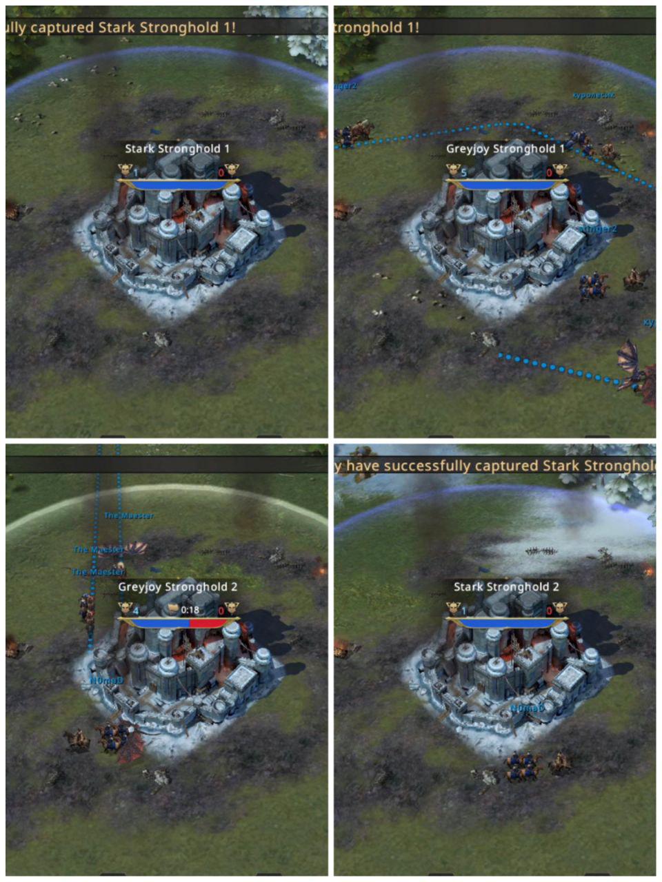 They take the Stark outposts the fastest as they are nearest to them. No fight still. They go on to take Armory and Hot spring without troubles neither. Only one fighter from TAD has come out and taken the Greyjoy outpost 2, the others have not yet moved. A tactical decision ? Problems with the players ? Who knows ? It matters not, XEN uses that opportunity to strike and get the Greyjoy outpost 1 without a fight. They only need to get back the Greyjoy outpost 2 and they’ll have every open building in control.