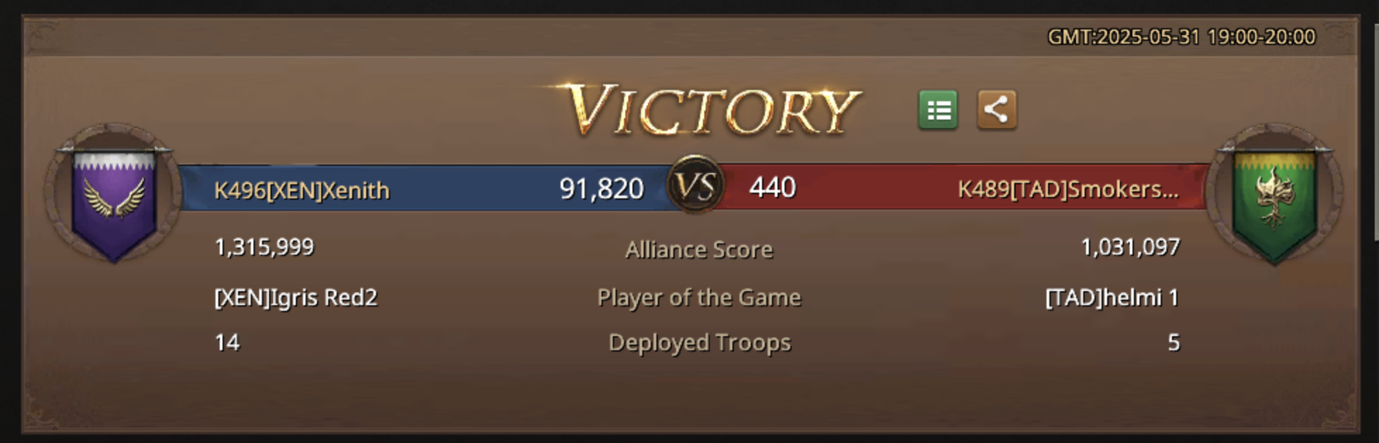 Only two games left in this training round of Siege of Winterfell (SoW) and XEN are still undefeated. The plan for tonight is to keep that going for the next two matches and finish the round with hopefully a perfect record of 6-0. They better not get ahead of themselves though, lots can happen in two matches. Today’s match will be against SmokersLounge aka TAD. Why TAD ? I have no idea. They call themselves that, so will we. In terms of power, the two alliances are evenly matched though their latest performances give the advantage to XEN.