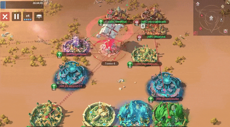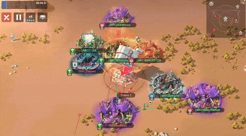 ARC relocated six players to Tower 1, one of whom was late and positioned on the far north side of the tower. He should have relocated closer and counted on his teammates to garrison it. HH sent four players to the tower with one overlapping two others. That person should cancel immediately so they don’t block both. Another tried to block one of ARC’s relocations on the north side, but ARC would reach that spot every time. At most, HH would have two players who successfully land. This should be an easy tower for ARC.