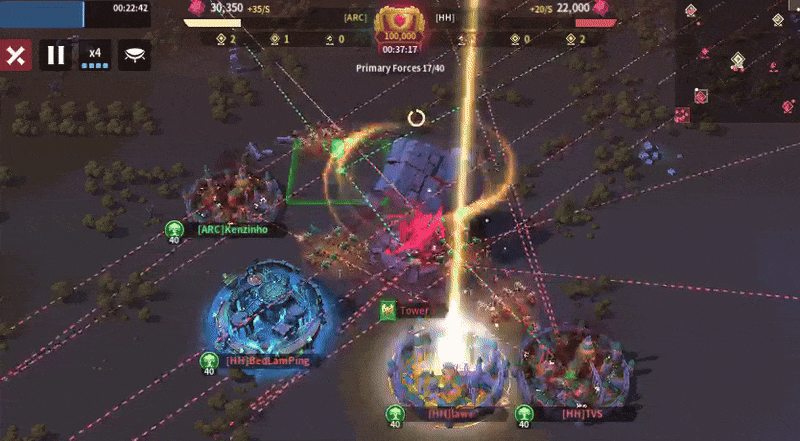 ARC stomped the opposition in the center to firmly establish control of the match. At the 20-minute mark, one ARC player relocated to HH’s home tower where two guards stood watch. They should have either moved next to the relocation and destroyed it or blocked it before it started building. One guard made the huge mistake of relocating away while another ARC relocated next to the tower. ARC was able to steal the tower at the 23-minute mark despite multiple enemies standing around the tower. Again, three players kept a third of HH busy at Tower 3.