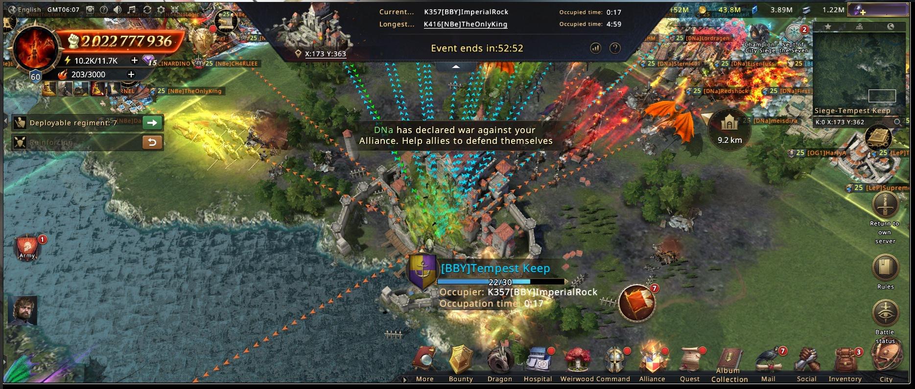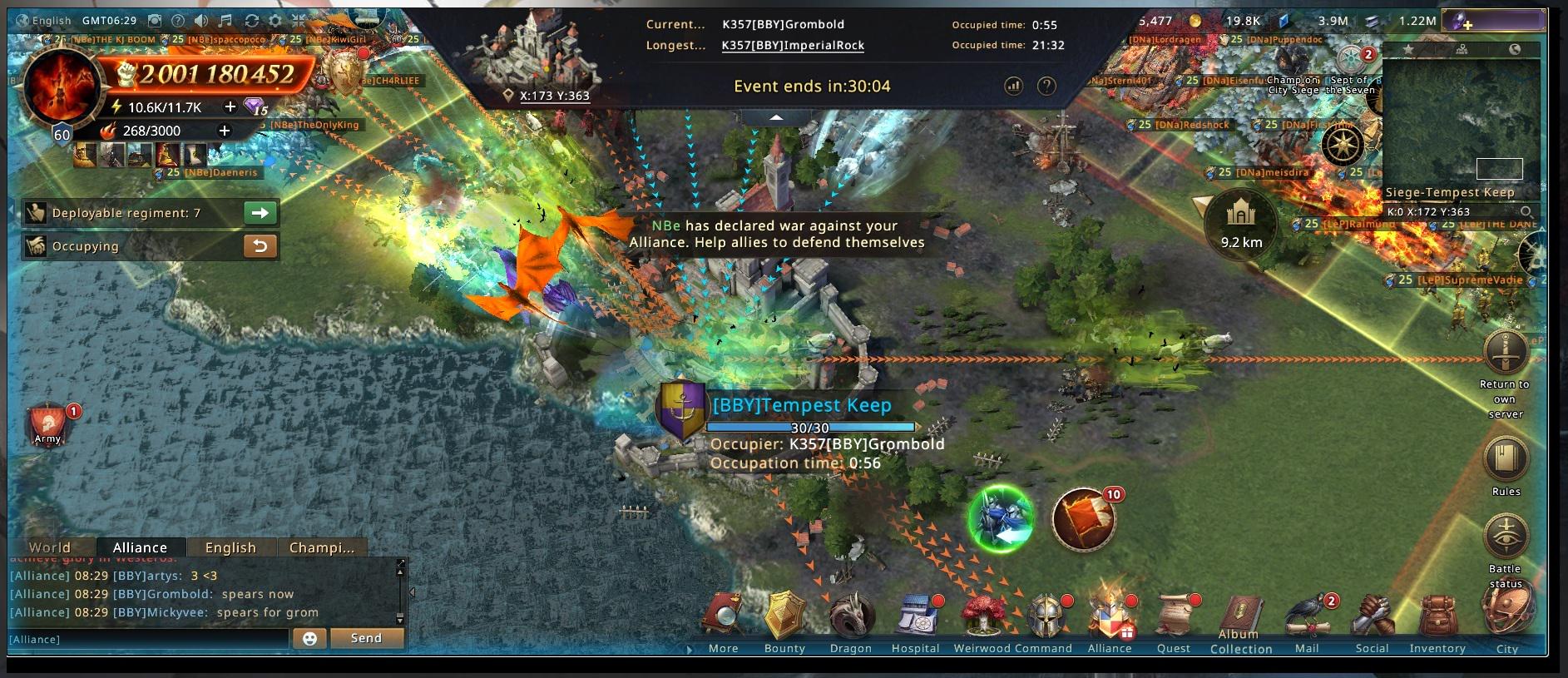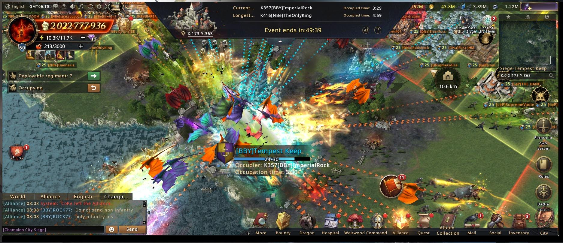At one point, NBe actually comes close to stealing Tempest Keep from us. But like I mentioned before, while defending we’ve got the advantage here. Our bench can speed in troops faster than attackers can re-rally after an almost successful-but-ultimately-failed push.