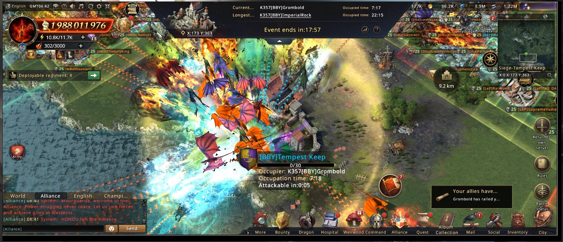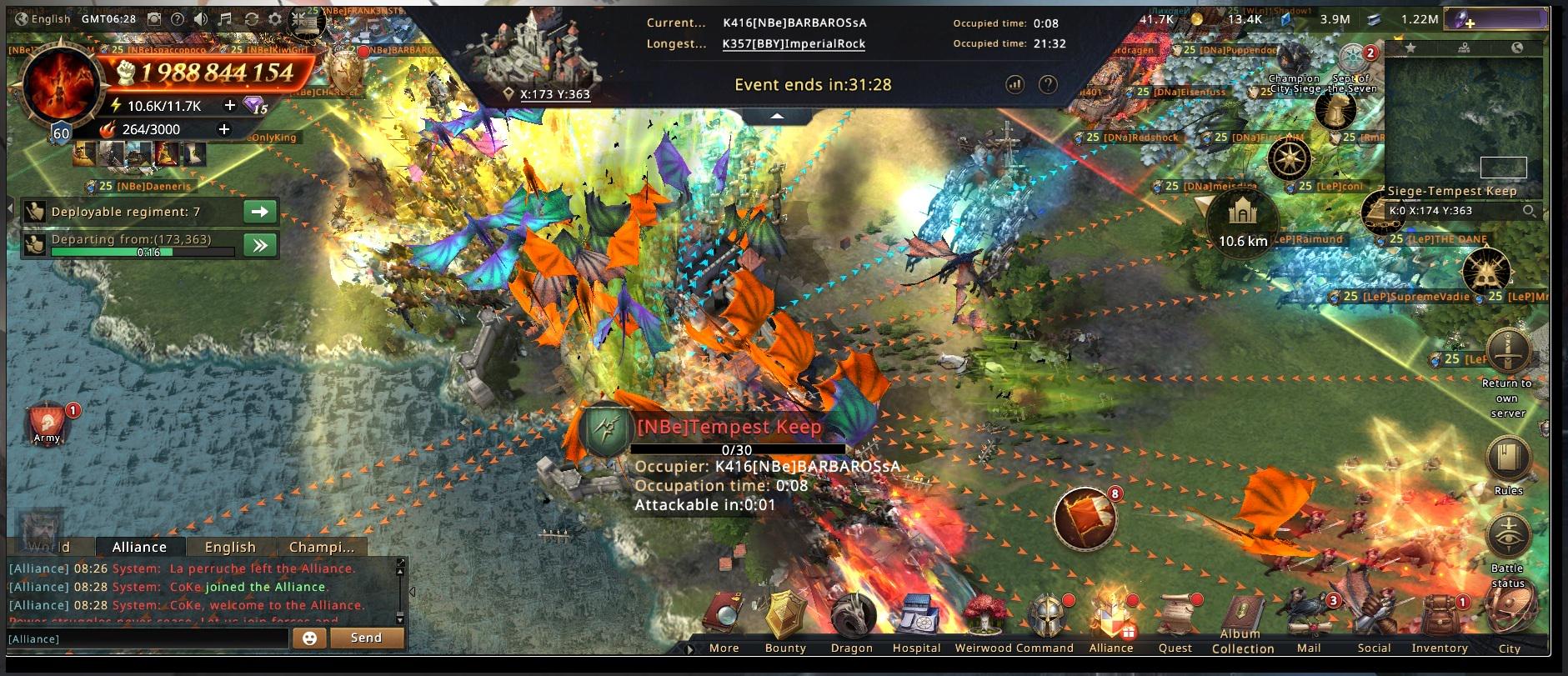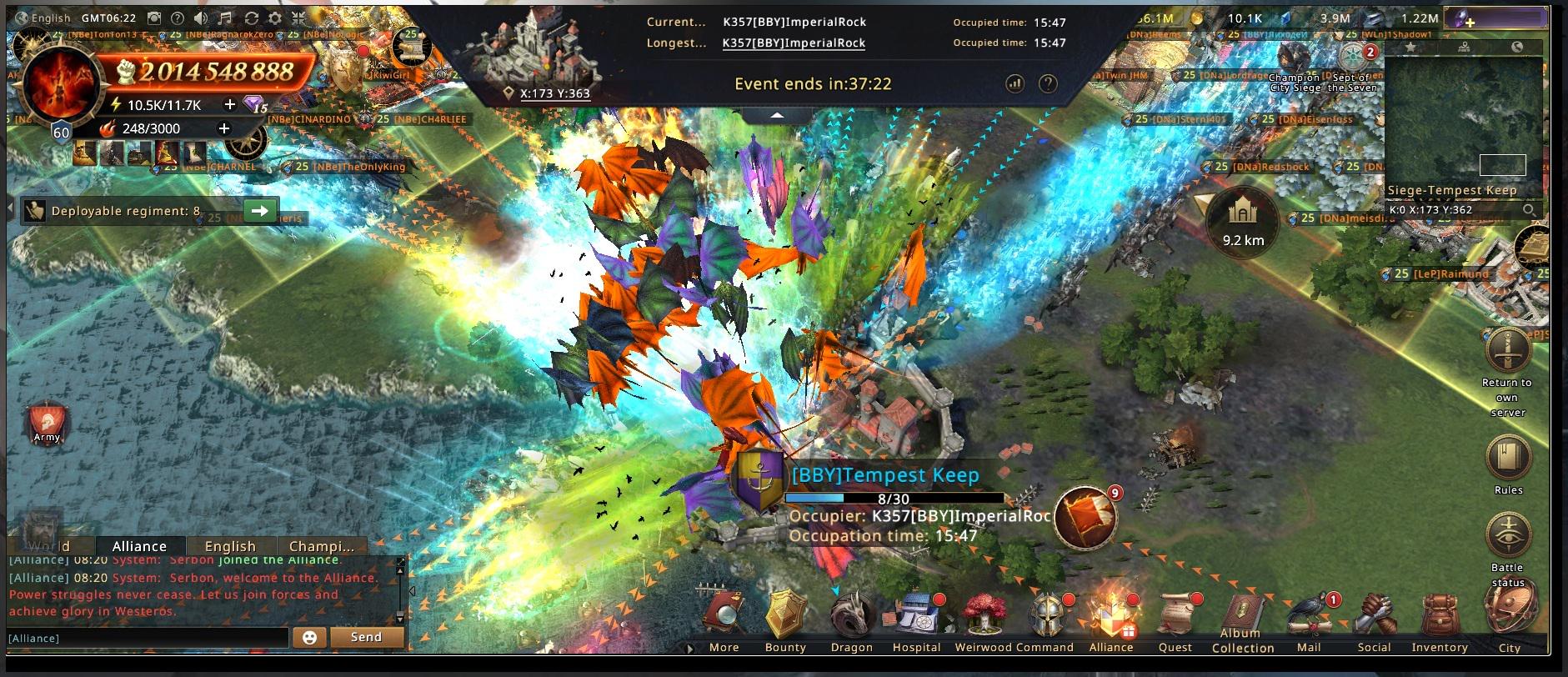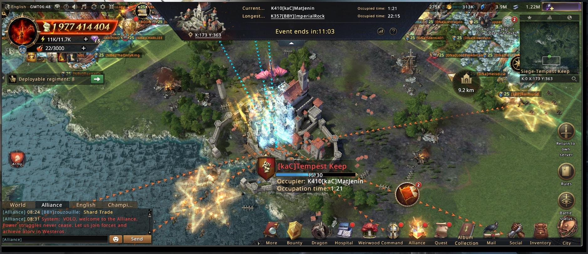 At one point, NBe actually comes close to stealing Tempest Keep from us. But like I mentioned before, while defending we’ve got the advantage here. Our bench can speed in troops faster than attackers can re-rally after an almost successful-but-ultimately-failed push.