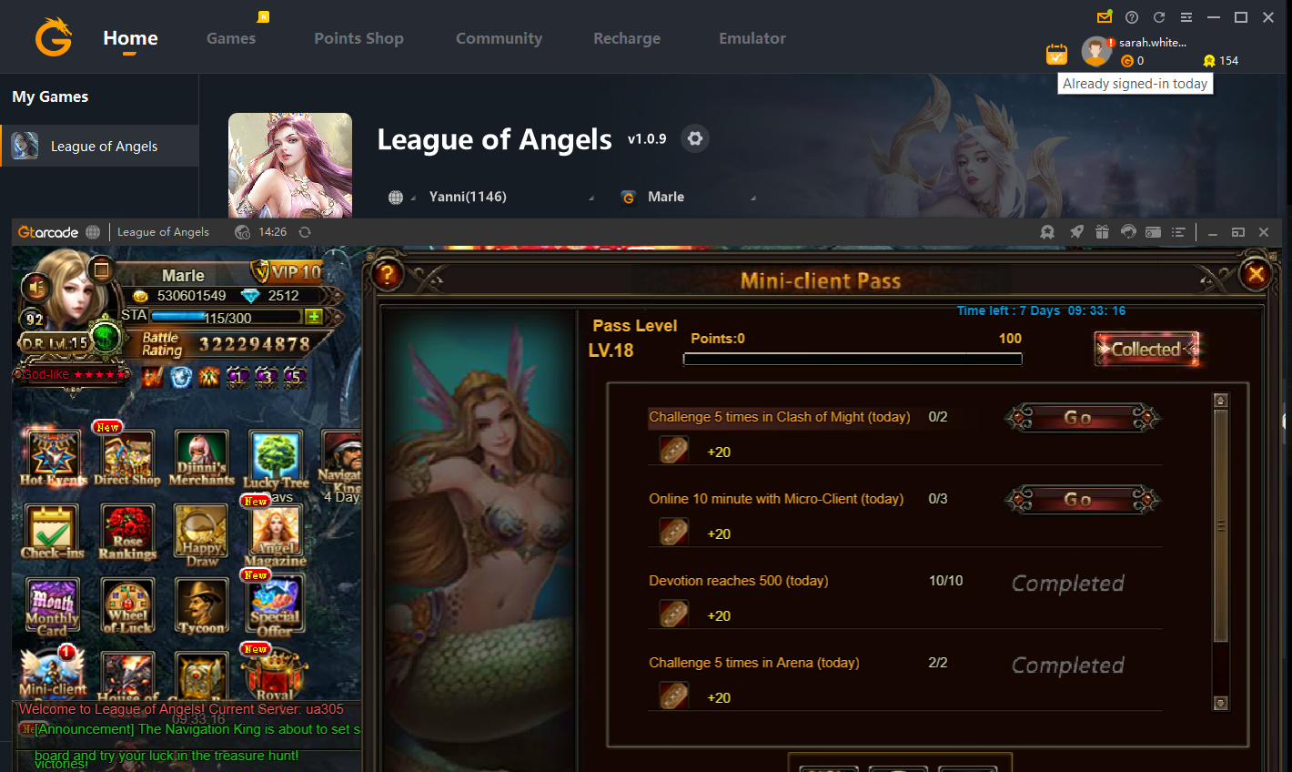 For about 2 months I have had the problem that the mini client pass READS that I have to be "Online 10 minute with Micro-Client (today)" in order to get the +20 to collect the daily Pass Rewards.