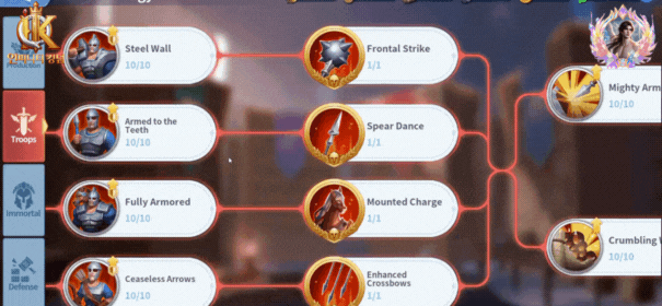 - Complete Production and Troop research trees to avoid bottlenecks.