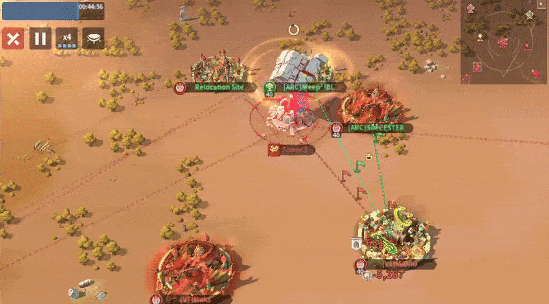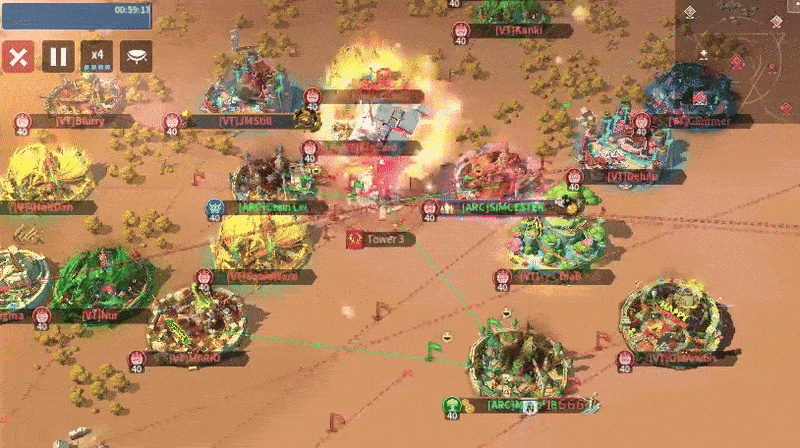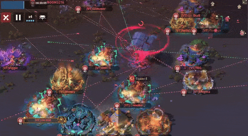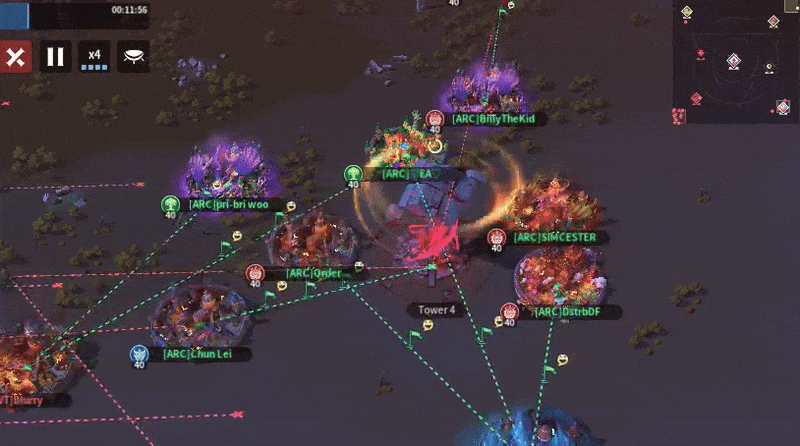 At Tower 4, ARC blocked two relocations and destroyed another, evening up the numbers. The ARC player who was going to block two of his teammates didn’t cancel his relocation, but fortunately for them, his teammate blocked him instead. ARC tried to attack and zero two players on each side of the tower before reinforcements could come. They got close, but they weren’t able to finish them off. VT kept sending more players to the tower. ARC destroyed a couple of relocations and blocked a couple more, but it was evident VT would soon outnumber them if ARC didn't start zeroing people. Both teams should have used more rallies instead of only sending solo attacks. At the nine-minute mark, ARC finally got their first kill and their reinforcements were showing up in droves. They also dwindled the number of VT relocations headed for Tower 4. Two minutes later, they zeroed everyone around the tower, surrounded it, and captured it in another two minutes. They quietly collected a 4,000-point lead due to the heroics at Tower 1.