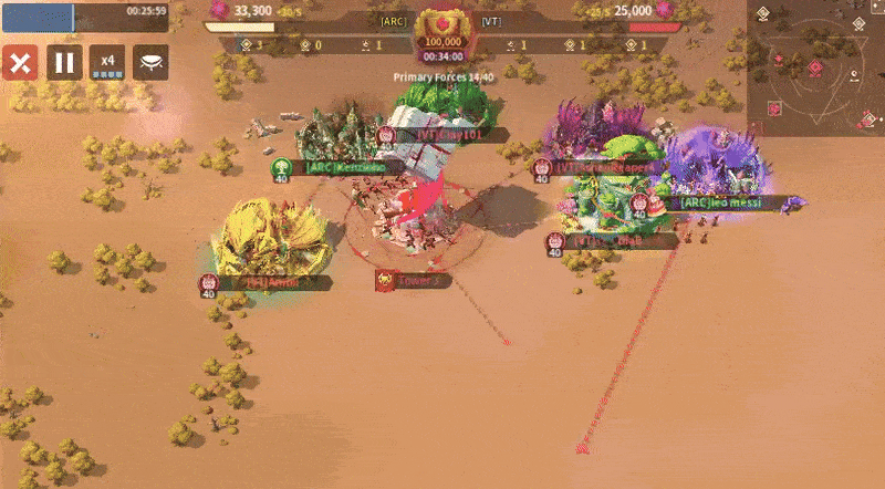 At the same time, ARC was making their own play at VT’s home tower. ARC knew if they continued to fight standard, they would lose. Seeing how poorly VT utilized rallies, their players realized the best way to win was to send one or two players to VT’s towers and keep a bunch of them busy while hoping the other three towers could hold their positions. One ARC player relocated to Tower 3 where there was only one guard at the ten-minute mark. Another joined him five minutes later. This forced VT to respond. With a third of their team stuck in spawn, they had more than enough people to stop the invaders. The problem is VT couldn’t break their defenses and didn’t use rallies as much as they should have. Even if there were only two marches in the rally, their enemies wouldn’t be able to defend against it. ARC zeroed a couple of VT members before VT sent eight players to stop them and finally expelled them at 26 minutes. ARC still held a meager 8,000-point lead.
