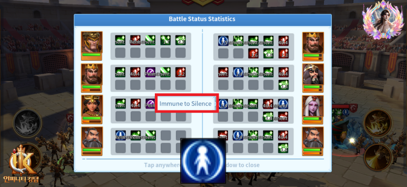 That blue aura around Immortals using Fountain of Life indicates Silence Immunity. It matches the buff icon shown in battle.