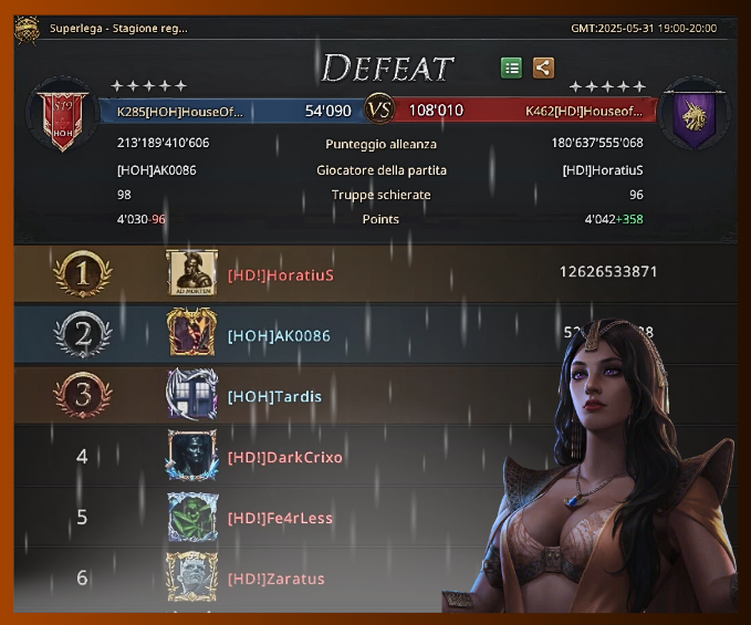 Thanks to two noteworthy offensive actions, after a rough start, HOH was keeping the match afloat despite still being at a disadvantage and the solo attacks carried out by the new additions to the rival ranks for this match were being strongly felt. “The opening of Casterly Rock is imminent. If we manage to conquer it, we could find ourselves in a position of advantage,” Neik reminded his companions, trying to urge them to give their best in the decisive phase of the match.
