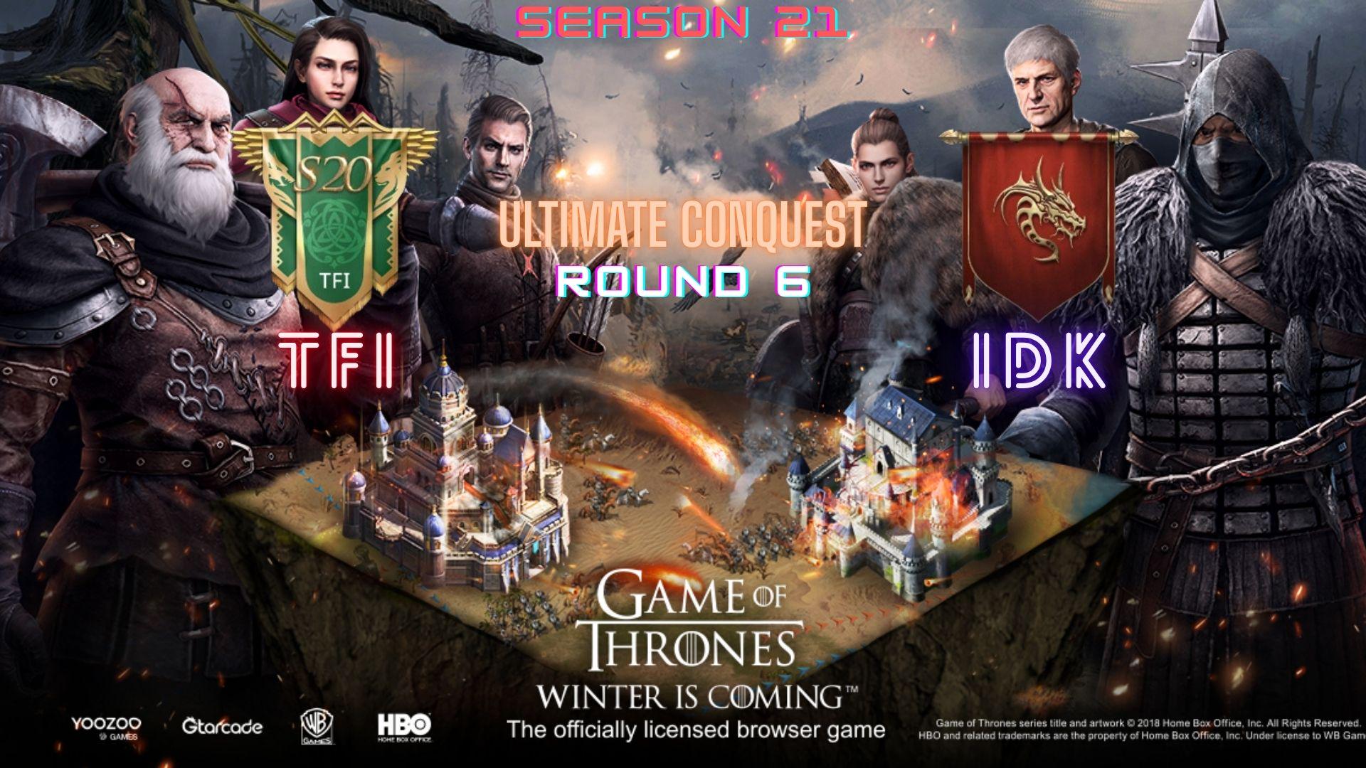 Lord and Ladies, tonight we have two teams fighting for the chance to make it to the Ultimate Conquest Grand Finale in A-League. As Westeros still recovers from the shock defeat of BAIZIMING and ADm, we have the two favorites for the title facing each other in round 6. Firstly, we have TFI led by the infamous DiEhArD, having nine wins under his belt this season, he is looking to claim an undefeated season and he knows he has the team to do so. Their opponents are iDk led by the powerhouse Ghost RiDeR, he believes his team has the weapons to dethrone TFI. Will DiEhArD’s iron grip hold firm or will Ghost RiDeR and iDk unleash the storm that finally breaks TFI’s reign?