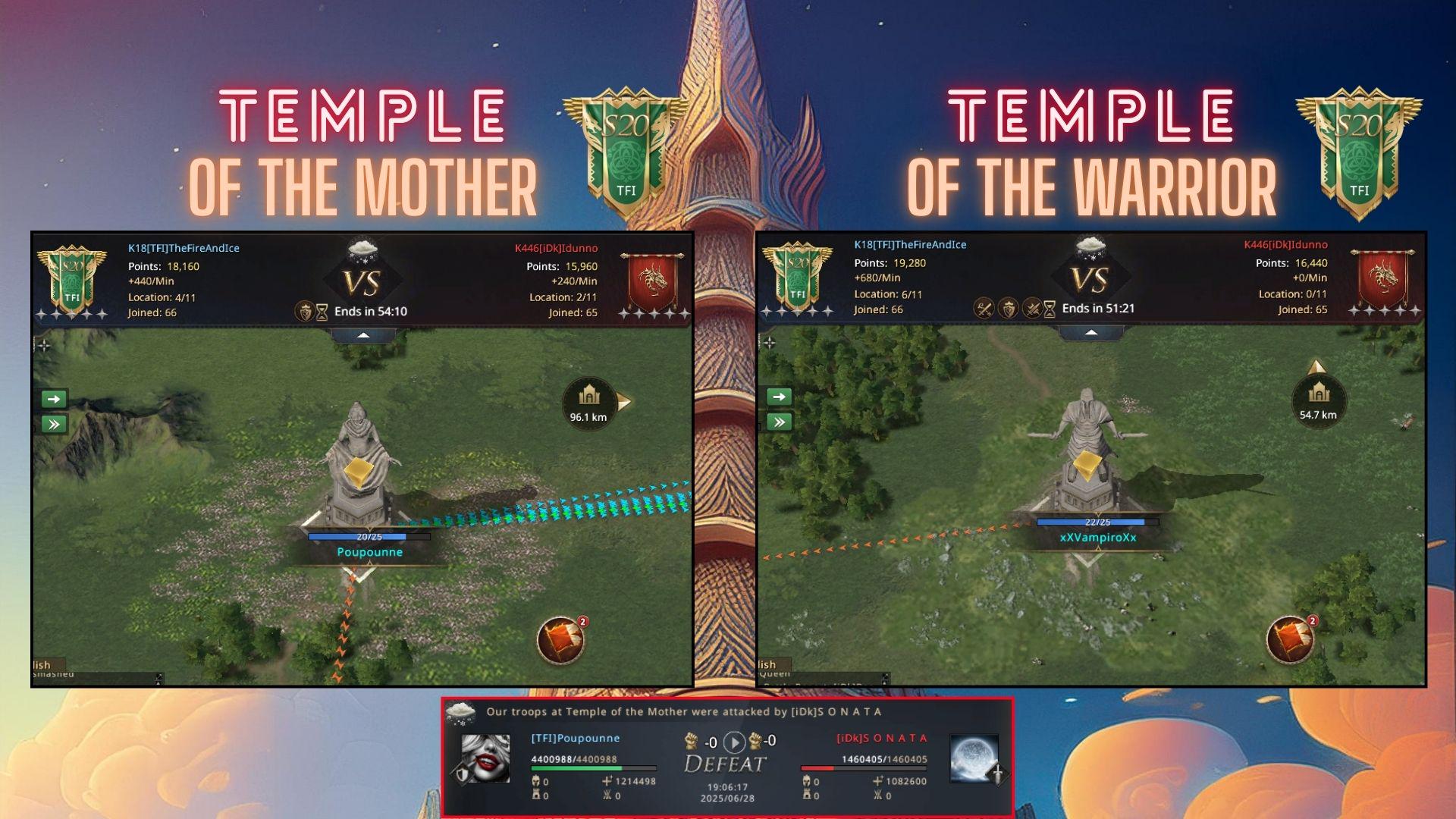 Finally, both teams entered the battlefield with 65+ members joining on each side, “this could be the closest match or a quick win, we don’t know which iDk we will get today, “varr knew iDk was undefeated so far this season and there was a reason for that. “Once again we will be focusing the Temple of the Mother and Warrior, these buildings are the ones we will defend the most,” DiEhArD had used this strategy for most of the season and wasn’t going to change now. The race began and it would be TFI that would be celebrating after 3 out of 4 buildings under their control. “They got the Temple of the Mother, as soon as it opens, begin the rallies, we need that building for our plans,” DiEhArD began his swap in the Targaryen Outpost as he waited for the Temple of the Mother to open up. As TFI completed their swap in Targaryen Outpost successfully, the Temple of the Warrior still had a TFI racer inside, “we need to swap me quickly the bubble is nearly down,” ZombieQueen was in a panic, she knew they were out of time. “The Temple of the Warrior’s bubble is down, quickly solo attack it and take it, we will have both temples under our control,” Ghost RiDeR was willing to take this gift on a platter. Ghost RiDeR seems to be trained in the arts of deception and psychological warfare, one has to wonder where did he get such training?