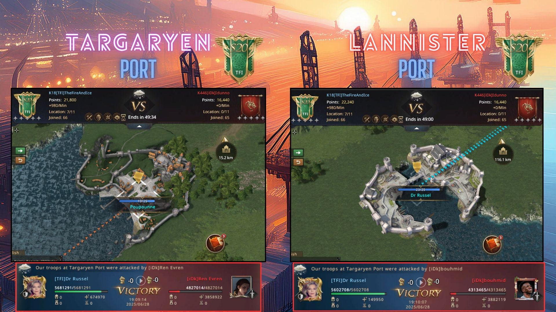 The Targaryen Outpost was now the target for iDk, “their rallies on the Temple of the Mother are numerous, perhaps we should sacrifice it for the Targaryen Outpost,” Ghost RiDeR just wanted to see TFI’s rally leader strength but needed more buildings for TFI to use their rallies on. “The faster we take the Temple of the Mother, the faster we can turn our eyes towards the lost Temple of the Warrior,” varr was furious about the lost temple and was willing to lose the Targaryen Outpost for it. Both sides were willing to lose the building they held for another but in the end, it was TFI that took the Temple of the Mother and regained the Temple of the Warrior. “Our rallies were close but they held strong, we need to prepare for the ports,” AnotherPup was surprised at TFI’s ability to reinforce, he knew when they meet again in the finals the desired outcome could be challenging.