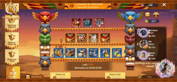 - Treasure Hunter: Top daily hunter now highlighted. This change simply adds visual emphasis to the top player on the daily leaderboard.