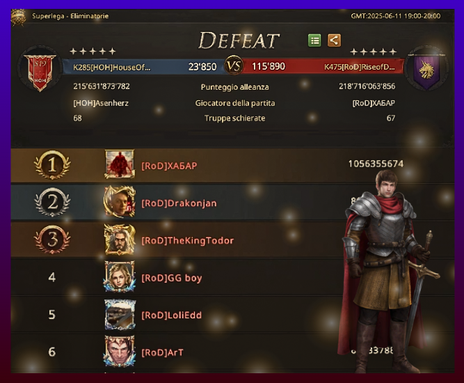 The gathered assaults launched an attack, reaching the walls of the target with good timing, but once again RoD’s defense, led by LordShorty, a fearsome opponent with his infantry, overpowered the attackers, who couldn’t break through. Even the following attempts were repelled easily. Neik’s spears and weakness formation were completely ineffective.
