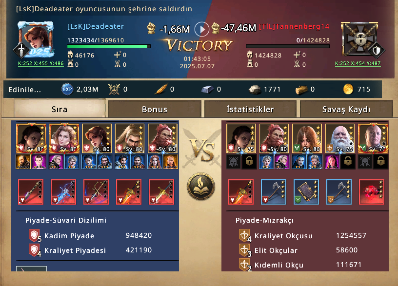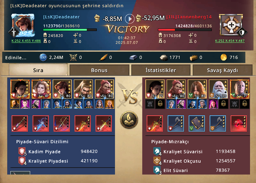 LsK Deadeater used his superior battle strategy and superior combat intelligence to blockade the enemy player and launch powerful attacks against the enemy player with his powerful infantry. He dealt devastating blows with each powerful attack. He destroyed all the enemy player's troops with his powerful infantry troops and captured the enemy player's lord, achieving a great victory.