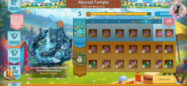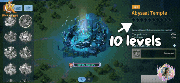 Earlier in the article, we noted that the Abyssal Temple Castle Skin is the second upgradeable castle skin introduced. It can be leveled up to level 10, with stats improving at each stage.