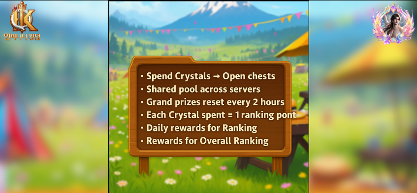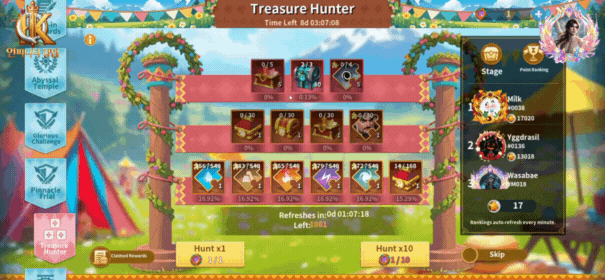 Spend Crystals to open chests and earn ranking points. Compete for leaderboard positions and rare drops.