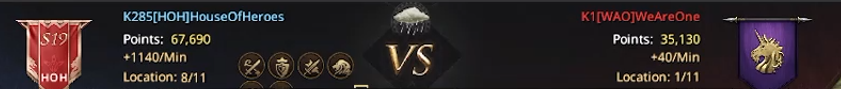 The capture of the mines was merely a formality at this point, but WAO tried hard to reignite the spark, when they intercepted HOH’s swap and sent all their available troops into the defence – gaining some extra points – but at the end HOH was able to recapture it, boosting their points and securing the victory.