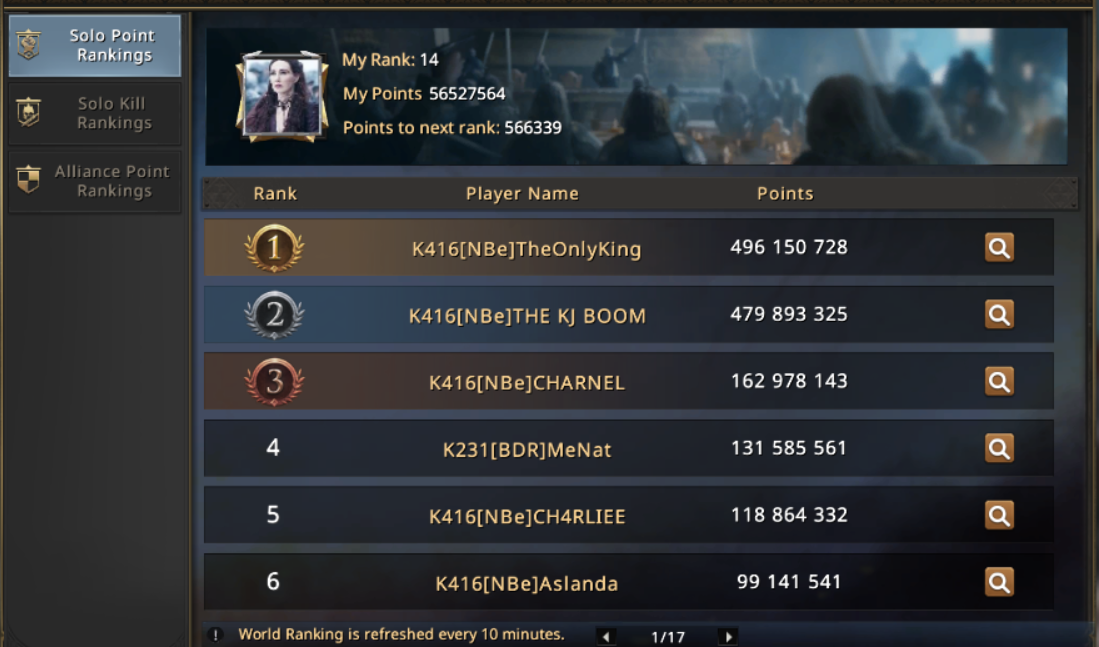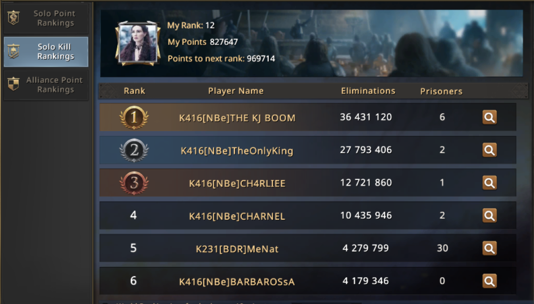 LoveBunnies, an experienced in battles and nomad by soul, was travelling the Seven Kingdoms without alliance and home, meeting new friends and visiting old ones to share the experience and the battles with them, decided for this KvK to visit k416. A strong kingdom, home of NBe. It was dangerous kingdom for her, but there she had very good and amasingly strong friend -THE KJ BOOM. With him they would participate in the event, being a team – LoveBunnies as zero castle will be the bait, and KJ will protect her, zeroing everyone who dare to attack. It was a good old plan, which LoveBunnies played it many times, but she will play it for the first time with KJ, so they have to work fast to can get good outcome of it.