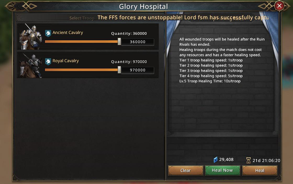 On a personal level, I didn’t come in with high hopes, but after such a strong start, I got caught up in the hype. By the midpoint, I actually believed we could win, fully aware that the Combined Army faces a big disadvantage in this event. My alliance friends seem happy enough with 7 out of 8 Ruins. That also means we’re getting better rewards compared to FFS, who ended with just 1 Ruin and the Castle. They did win, yes, but with significantly fewer spoils of war.