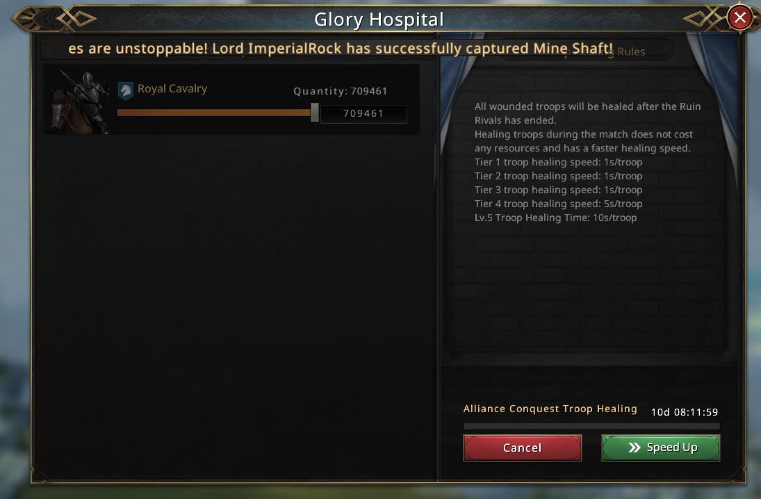 Unlike the previous Guardians of the Ruins Galaxy, here we barely made any impact. No matter who tried, solo or rally, in the end, it was all for nothing. So, after all our efforts, months of speed-ups spent healing, and high hopes built during this match, it looks like we’re going home empty handed.