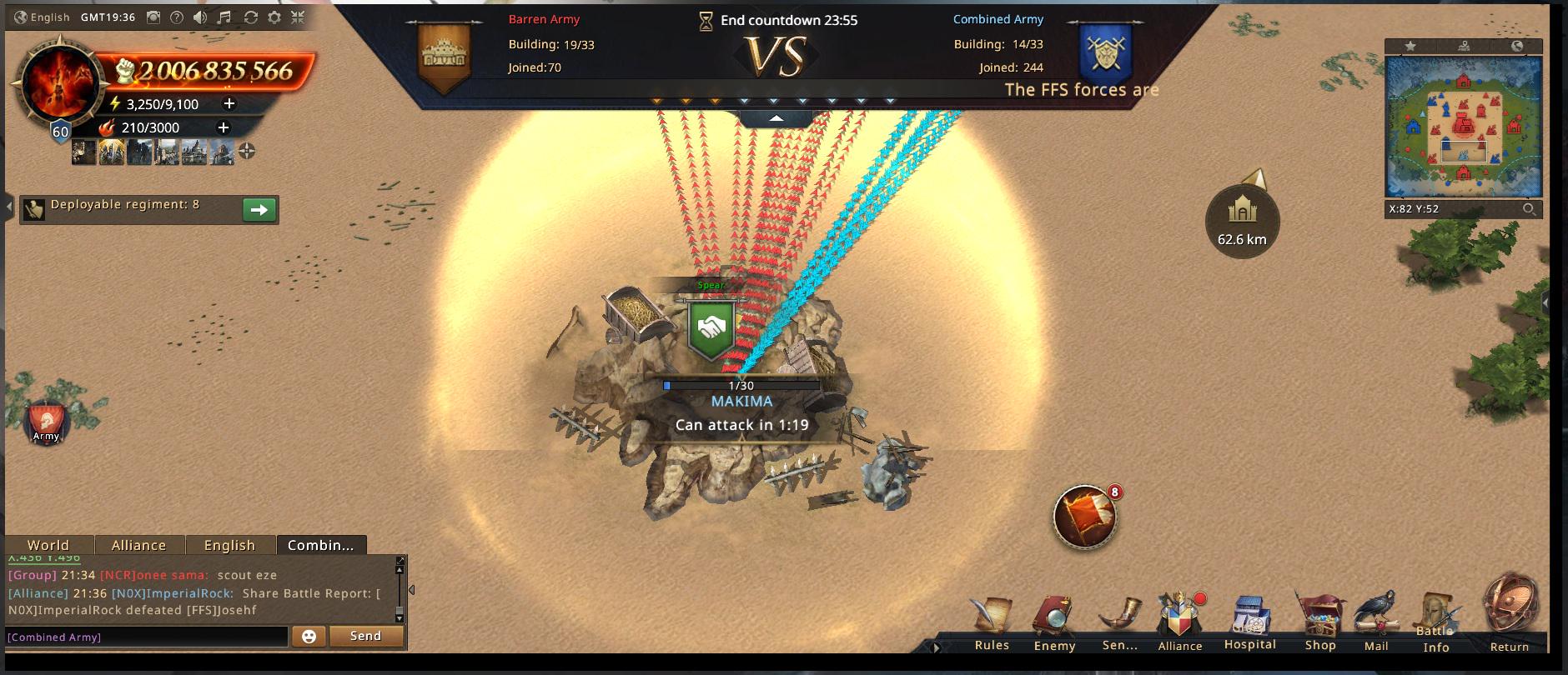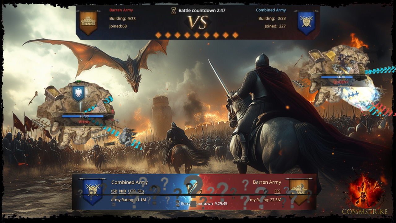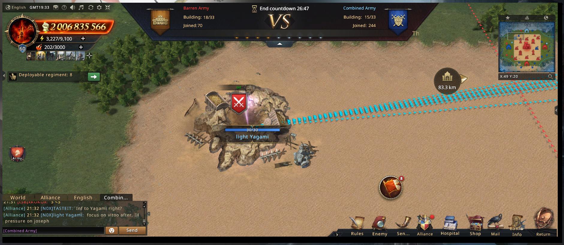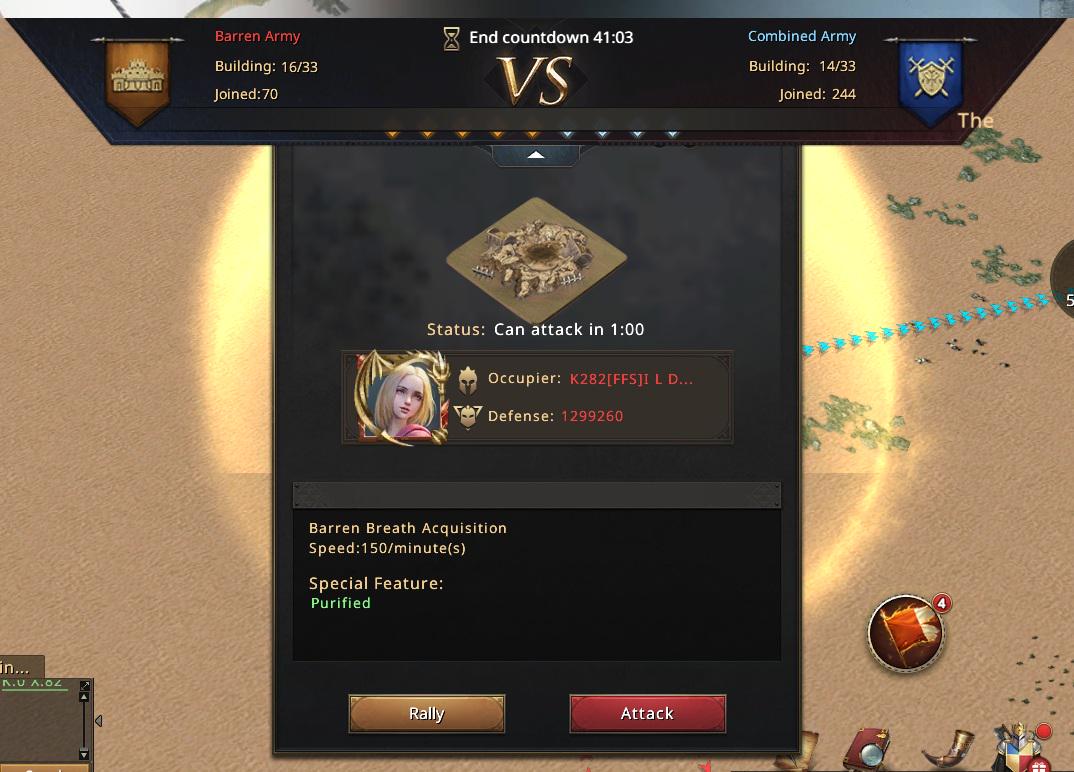 This is way harder than it was with QUEENY. By now, all our rally leads and top accounts have their full buffs. The only upgrades left are from the scattered smaller buildings on the map, and since the entire Barren Army has no other objectives anymore, they’ve dedicated themselves to full map control. Tracking and blocking our every move. Denying us even the smallest edge.