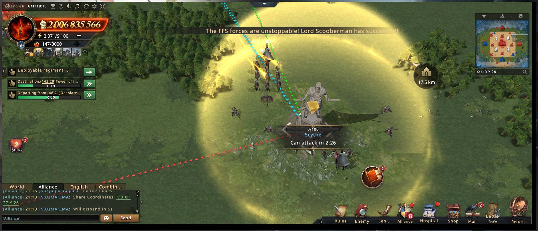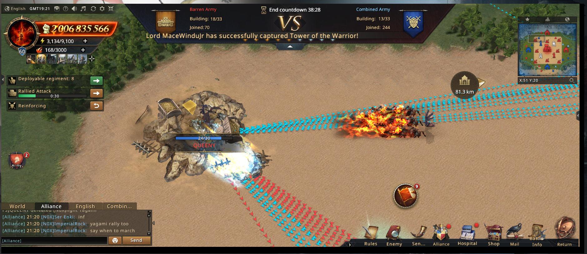 I can’t say the other alliances in the Combined Army were much help with the Ruins themselves, but at least they’re holding the line at the smaller buildings. Not an easy job, especially with QUEENY going berserk after we kicked them out of the Ruin. They’re constantly sweeping through and kicking everyone out of the small objectives.