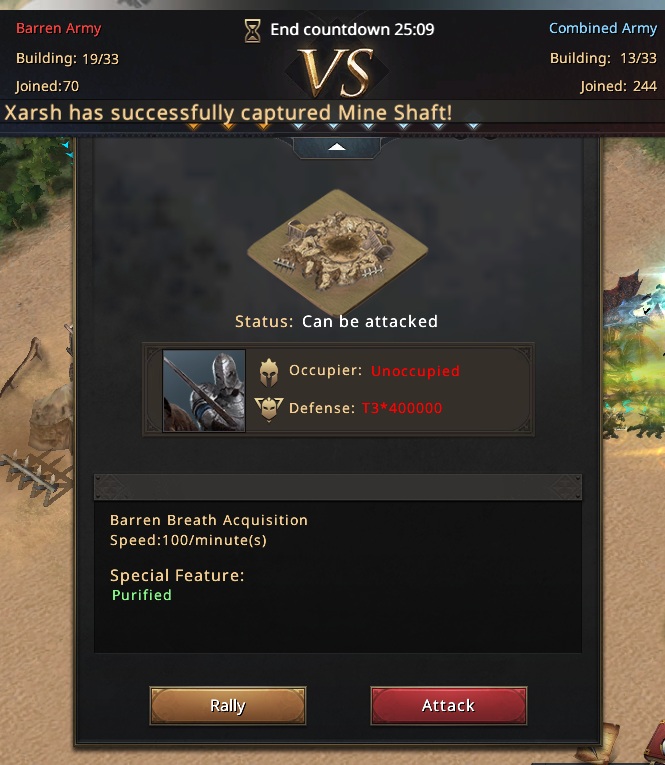 But here’s the downside: now the Barren Army has fewer vital objectives to defend, which means they can assign their biggest accounts to hold them. That makes our job as the Combined Army a lot harder when it comes to contesting.